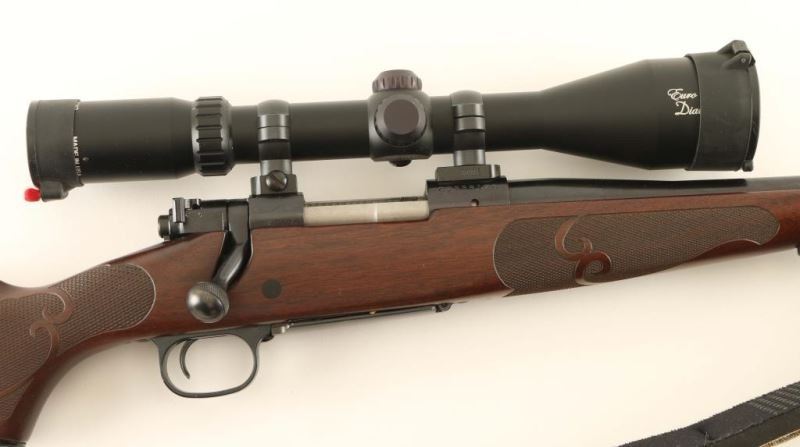 Excellent quality American made bolt action sporting rifle chambered in .25 Winchester Super Short Magnum. Features a blued finish, 22" tapered barrel w/o provisions for sights, Burris Euro Diamond 3-12x 50mm scope, jeweled bolt, internal magazine w/ hinged floorplate, manual safety, serrated trigger, Butler Creek sling, and fancy checkered walnut stock with schnabel forend, plastic grip cap & factory recoil pad. Rifle exhibits little to no visible wear. Action is smooth, bore is excellent, optics are clear and wood stocks are fine. Condition is excellent. ***Modern Firearm***