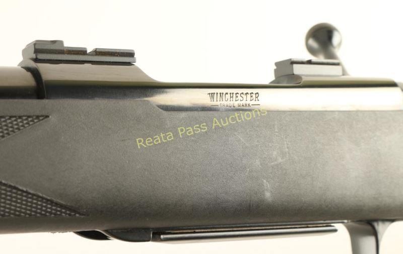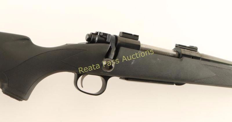 American made bolt action sporting rifle chambered in .30-06 Springfield. Features a bright blued finish, 24" tapered barrel with no provision for sights, installed scope blocks, detachable box magazine, smooth adjustable trigger, jeweled bolt, manual safety, swivel stud, and checkered black synthetic pistol grip shoulder stock with extension, factory recoil pad & 14.5" LOP. Rifle retains approximately 98% of it's original blued finish showing some two small dings on the right side of the receiver ring and little wear elsewhere. Action is smooth, bore is pristine and synthetic stock is very good+ showing light scuffs. Condition is near excellent ***Modern Firearm***