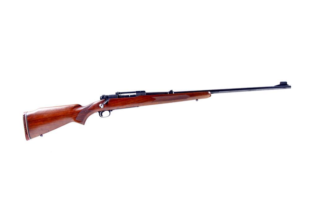Winchester Mdl 70 Cal .338 WinMag SN:494540 Nice pre '64 Winchester bolt action rifle in .338 caliber. Blued finish, checkered semi pistol grip stock with Winchester rubber butt pad, 25" barrel with original iron sights, and a receiver mounted Redfield sNice pre '64 Winchester bolt action rifle in .338 caliber. Blued finish, checkered semi pistol grip stock with Winchester rubber butt pad, 25" barrel with original iron sights, and a receiver mounted Redfield scope mount added, good bore and action.Condition: Excellent showing little use. Wood has just a few light dings from storage. Includes trigger shoe.