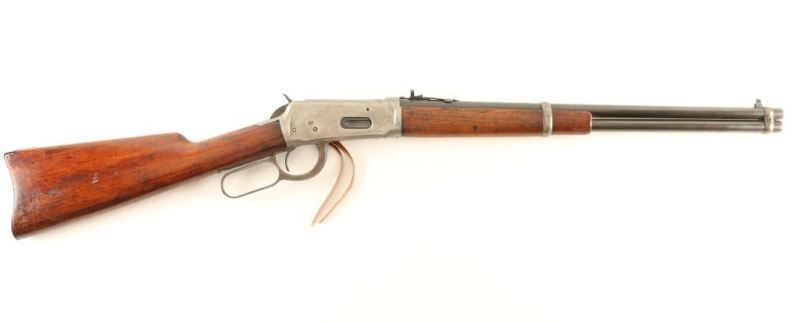 'SRC' Vintage lever action repeating rifle chambered in .30-30 Winchester, circa 1926. Features a blued finish, 20" barrel, full length tube magazine, two barrel bands, blade front sight, King semi-buckhorn adjustable rear sight, saddle ring, smooth trigger, knurled hammer spur, grip safety, smooth gumwood forend and straight grip shoulder stock with metal carbine buttplate. The receiver is in-the-white, the barrel has faded to a smooth grey patina and the magazine tube shows some faded original bluing mixed with a browning patina. Action is sound, bore is fair with light pin prick pitting throughout, markings are good and the wood stocks are good with numerous blemishes. Condition is NRA good. ***C&R Firearm***