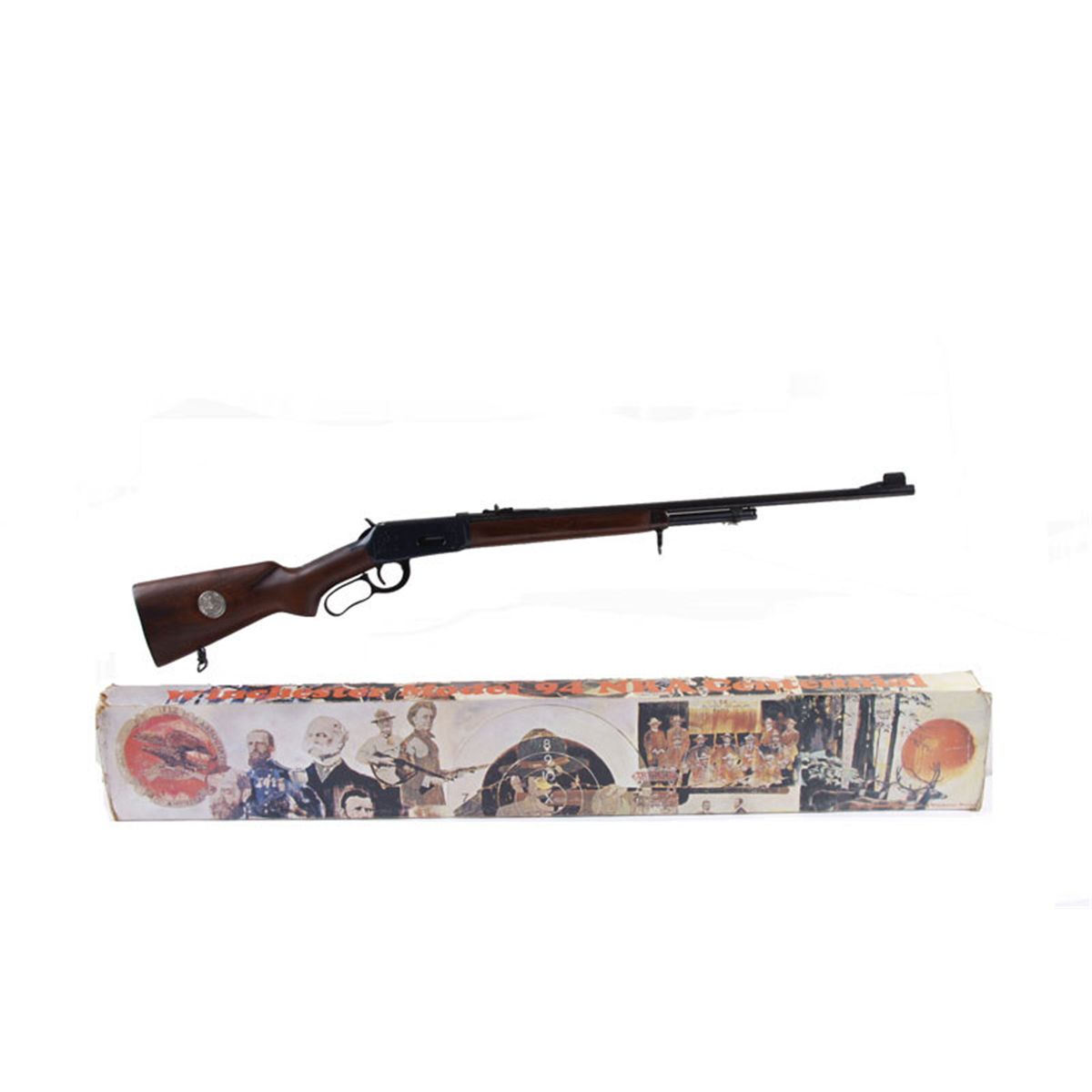 Winchester Mdl 94 Cal .30-30 SN:NRA45361 NRA Centennial Commemorative Winchester rifle with silver medallion inlet to the right side of the stock and NRA 1871-1971 engraved on the left side of the receiver with some light scroll engraving. Blued finish,NRA Centennial Commemorative Winchester rifle with silver medallion inlet to the right side of the stock and NRA 1871-1971 engraved on the left side of the receiver with some light scroll engraving. Blued finish, withsmooth walnut semi-pistol grip stock and forearm, 24" light barrel with 1/2 length magazine, sling swivels, and standard rifle sights. Good bore and action. Included in original commemorative decorator box.Condition: Near new with little sign of use.