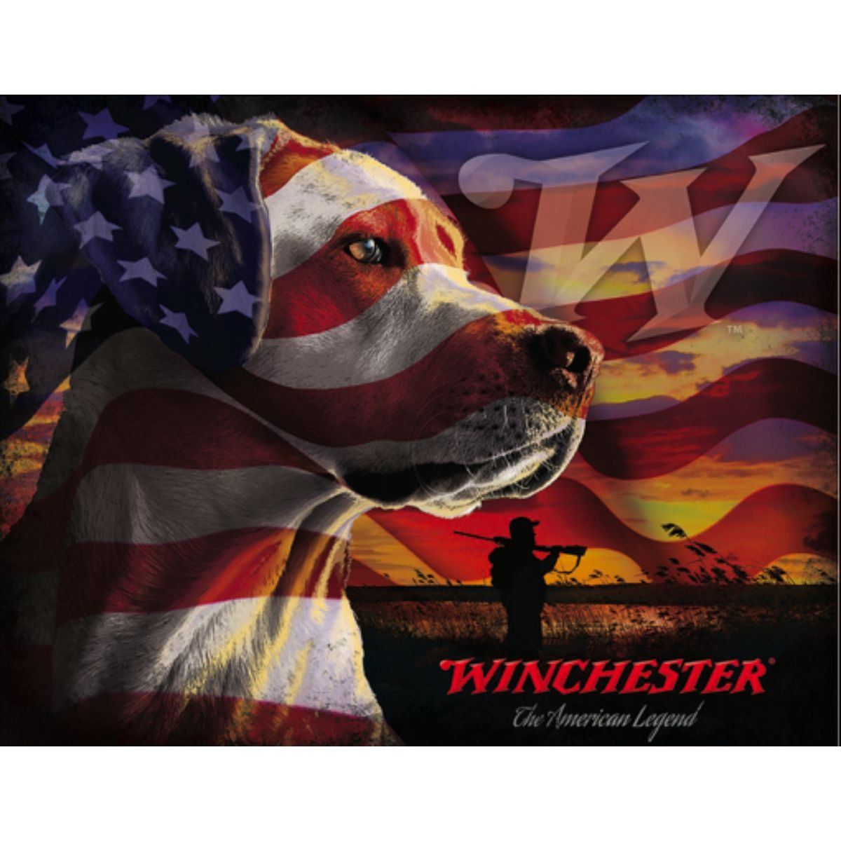 Winchester - The American Legend metal pub bar sign. 12 1/2" x 16" with pre-drilled holes for mounting.Â