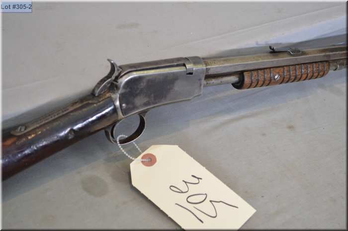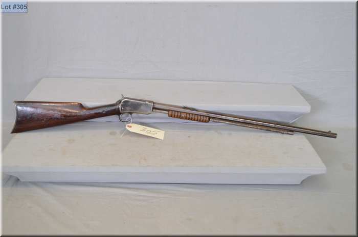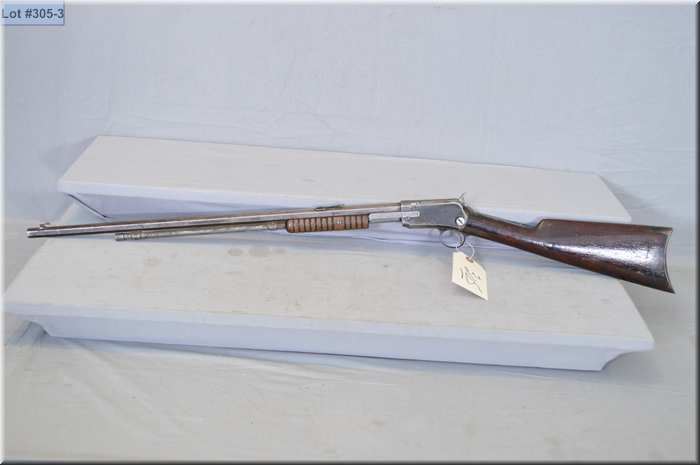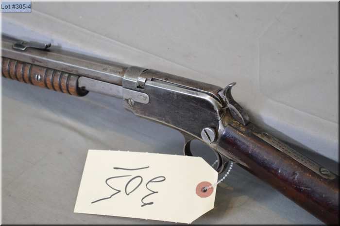 Winchester Mod 1890 . 22 Short cal pump action Rifle w/ 24" oct bbl [ traces of blue fading to grey, butt stock appears screwed thru at wrist on right side, good forend, crescent butt plate ] Ser # 4428818 Circa 1911