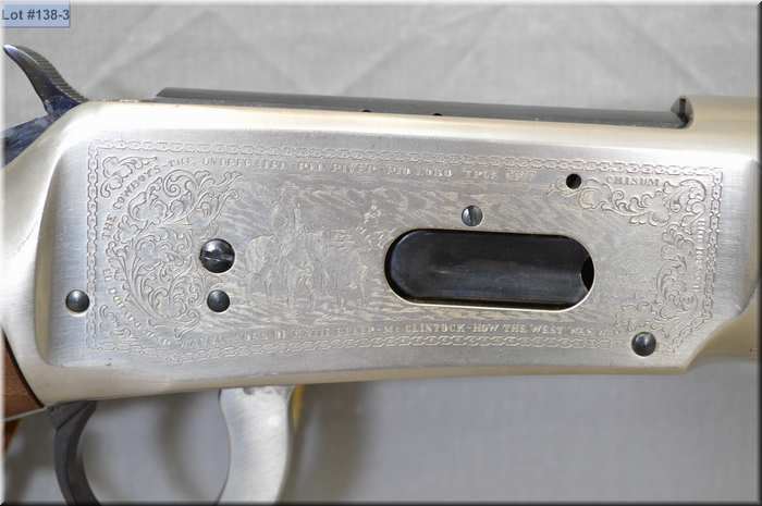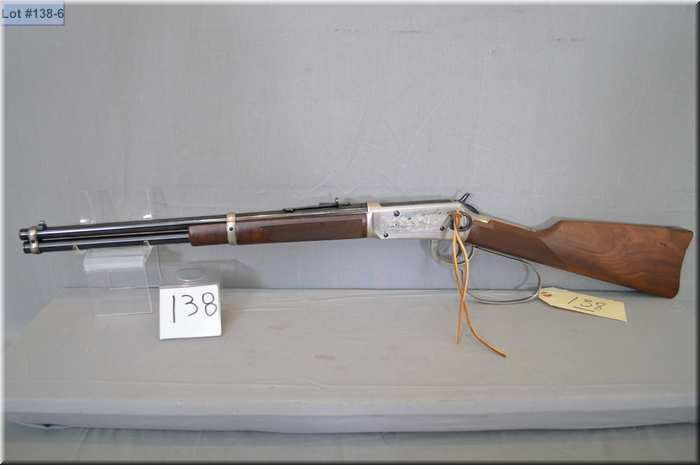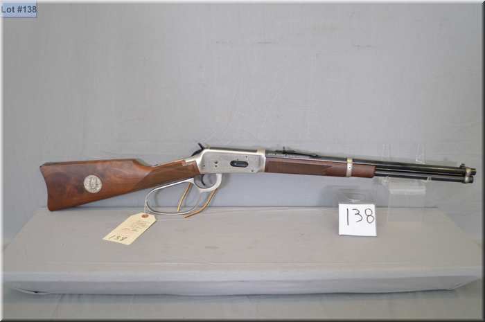 Winchester Mod 94 John Wayne Commemorative .32-40 cal lever action saddle ring Carbine w/18" bbl [ appears as new, test fired w/ large loop lever, checkered pistol grip stock & forend , few slight marks, no box ] Ser # JW 25710