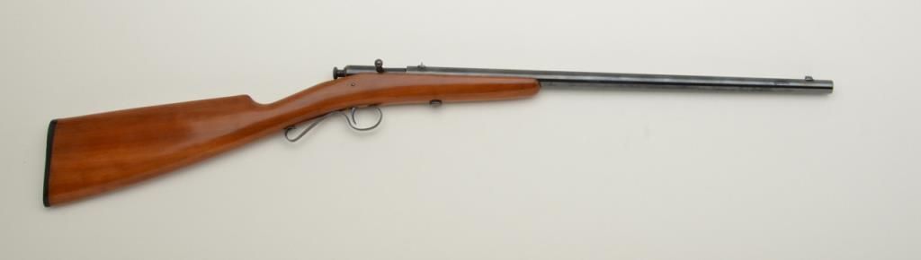 Winchester Model 02 bolt action rifle, .22 short, long or extra long cal., 18” barrel, re-blued finish, wood stock, #NVSN in overall good condition as re-finished, crisp action, good markings, fair to good bore, good wood stock. Est.: $300-$600.