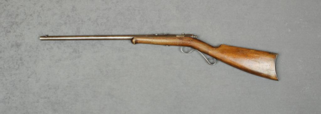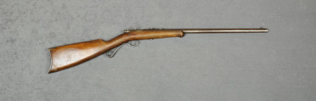 Winchester Model 04 bolt-action rifle, .22 short, long or extra long cal., 21’ round barrel, blue finish, wood stock, #NVSN. This gun is in overall very good condition showing traces of original blue in protectedareas with balance gone to a brown patina, fairly good bore, crisp action, good markings, overall good wood with scattered nicks, mars and scratches from carry and storage; correct steel crescent butt plate.Est.: $125-$250.