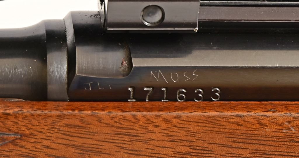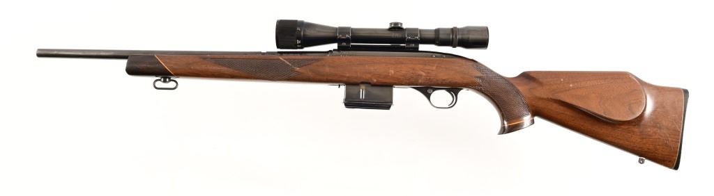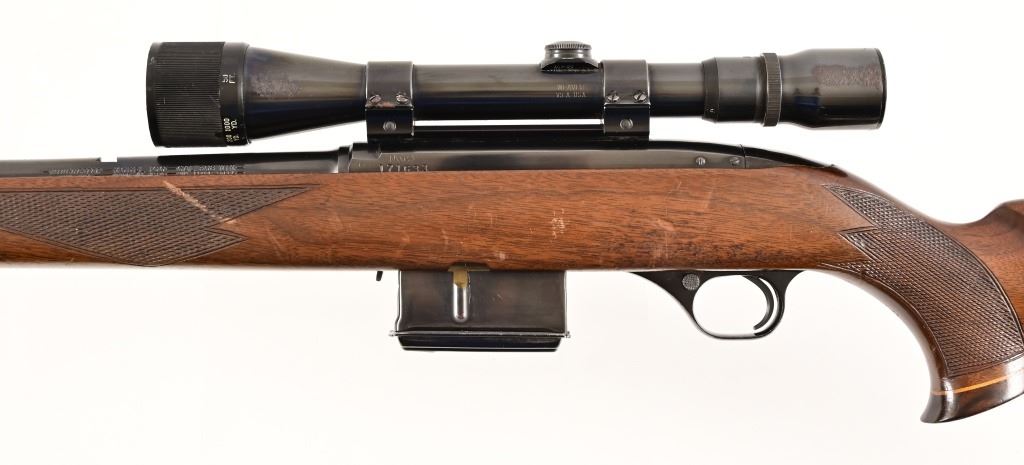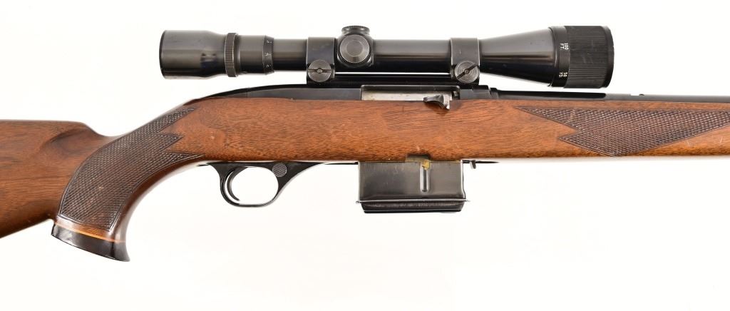 S/N 171633. Weaver V9-A scope, 19" barrel. Fitted with after market checkered wood stock and extended magazine. Modern