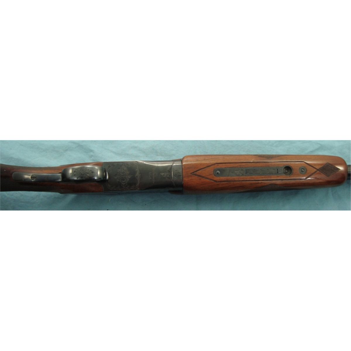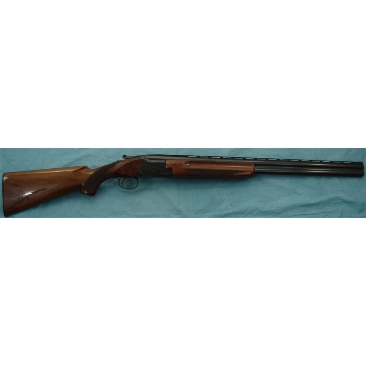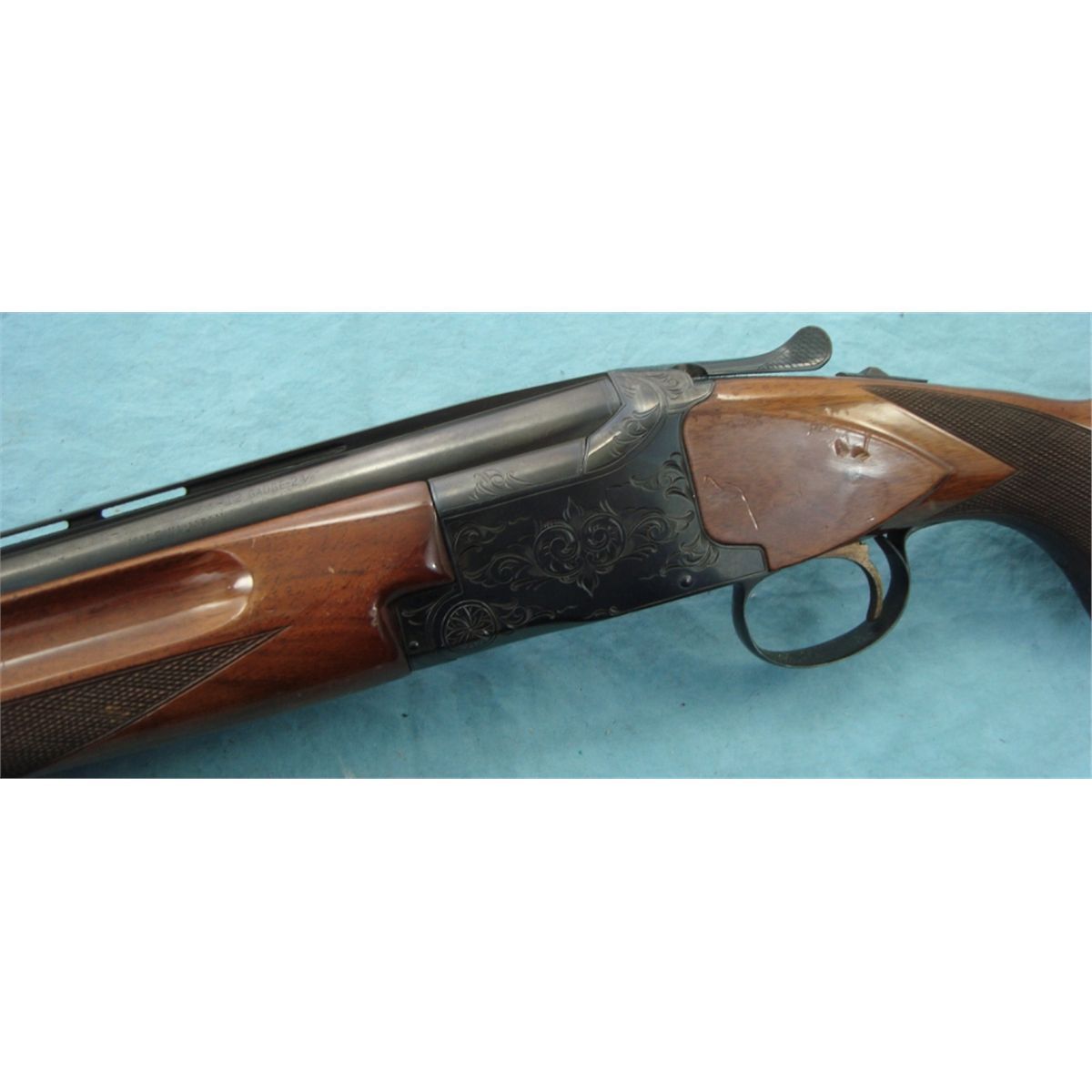 #K149601; 12 ga. w/ 2 3/4" chamber & 26" bbls. & bright bores. Blued metal finish w/engraved receiver are in good condition. Stock shows numerous dents & scratches from use.