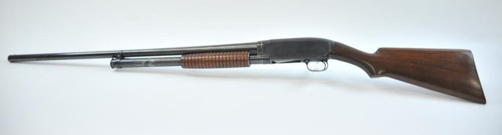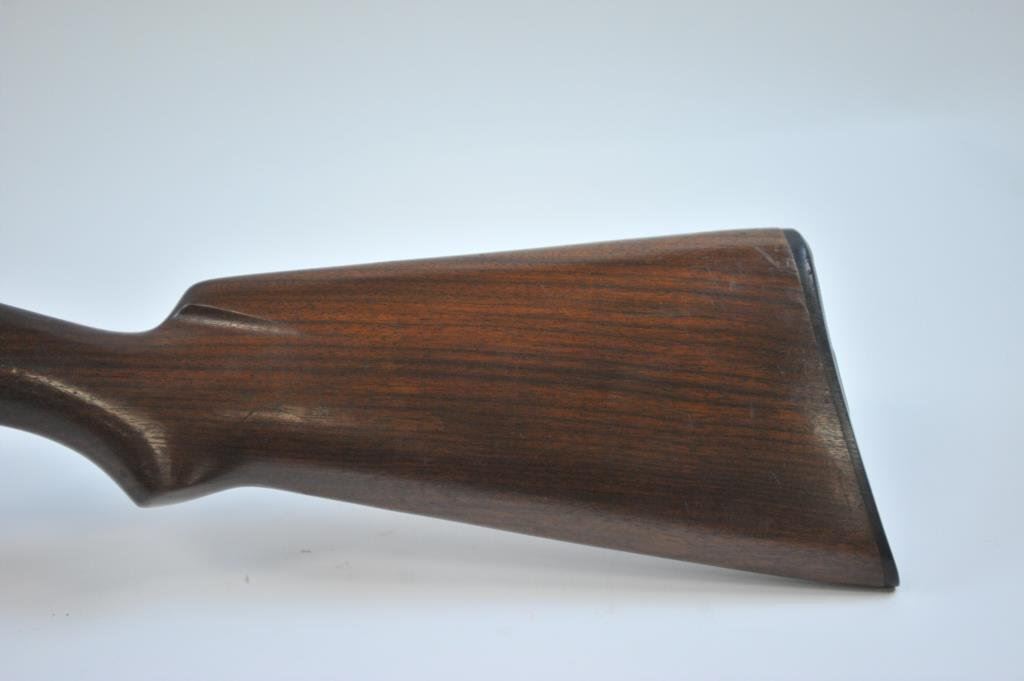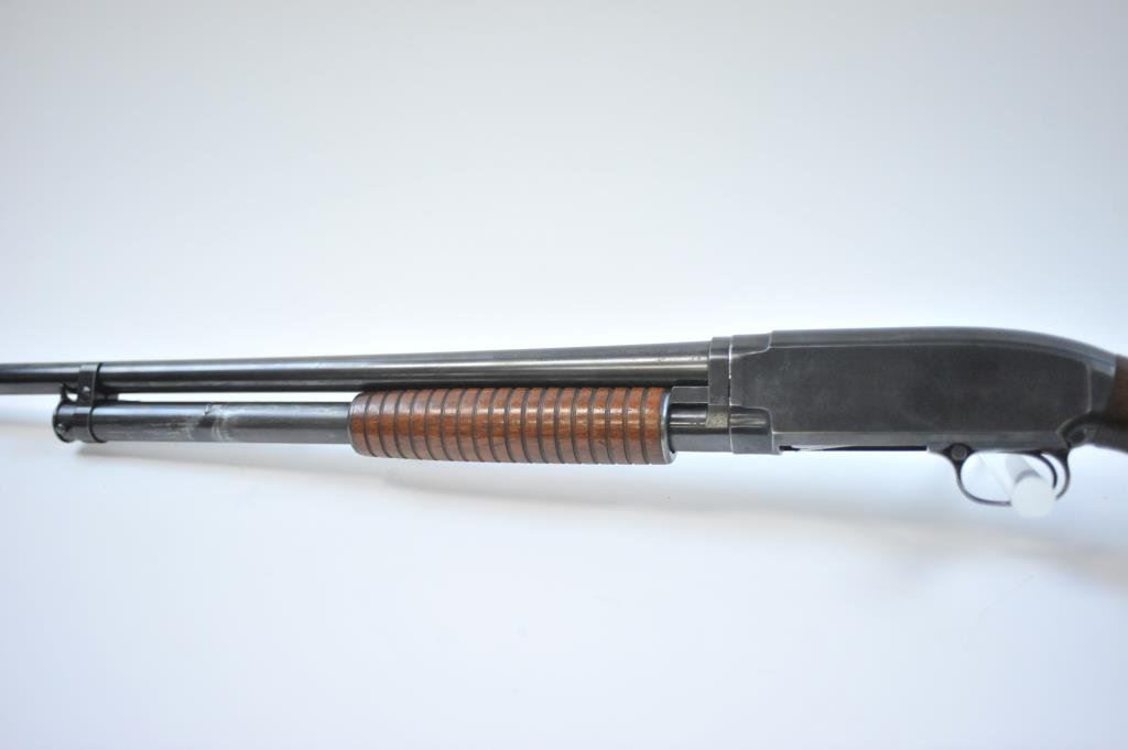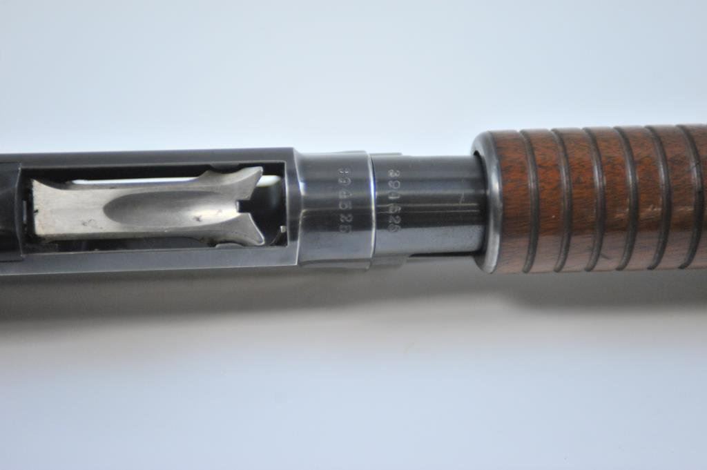 barrel, full choke, nickel steel, S/N 894525. Very good to almost fine original blue with slight thinning at the edges and operating areas. The wood is very good plus also with original Winchester butt plate. Well cared for and a strong 8 on a 1-10 scale with period leather mutton case. Est.: $350-$700