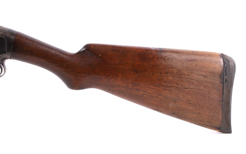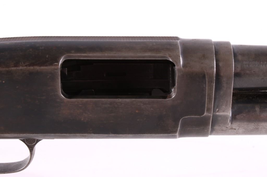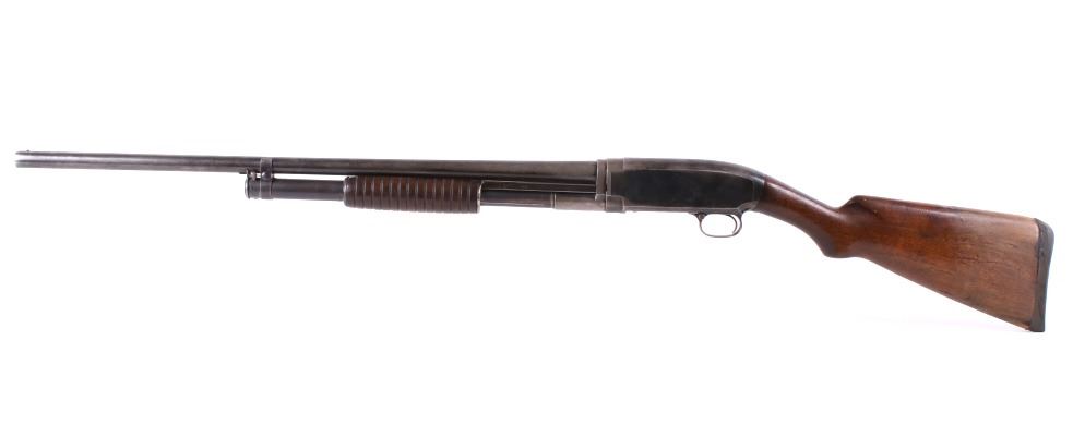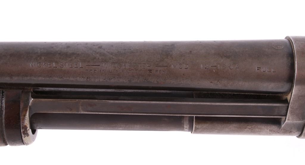 Featured in this lot we have a Winchester Model 12 pump action 16 gauge shotgun. The shotgun features a 26" round barrel, full fixed choke, straight grain pistol grip walnut stock, cross bolt safety, 6 round magazine. The Winchester Model 1912 (also commonly known as the Model 12, or M12) is an internal-hammer, pump-action, shotgun with an external tube magazine. Popularly named the Perfect Repeater at its introduction, it largely set the standard for pump action shotguns over its 51-year high-rate production life. Initially the Model 12 was chambered for 20 gauge only. The 12 and 16 gauge versions came out in 1913, and the 28 gauge version came out in 1934. The shotgun is marked across the top of the barrel, reading "Nickel Steel - Winchester Trademark U.S. Patent Off - Model 12 - 16 GA - Full". The shotgun is in good condition overall with some significant loss to the finish and wear. The bore is bright and in good condition. This shotgun has a manufacture date of 1923. Serial Number: 356684. This firearm qualifies as a Curio & Relic, and requires FFL Transfer or NICS Background Check.