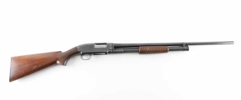 Pump action shotgun circa 1940. 26" barrel is marked 2 3/4" CHAM. MOD.. Wood stock is in good condition with signs of wear on both the stock and forend but in good shape overall with some scratches but no bad dents or dings with Winchester butt plate. Barrel and receiver retain quite a bit of bluing but there is some surface rust on the barrel toward the muzzle that should be dealt with. NRA Good C&R Firearm