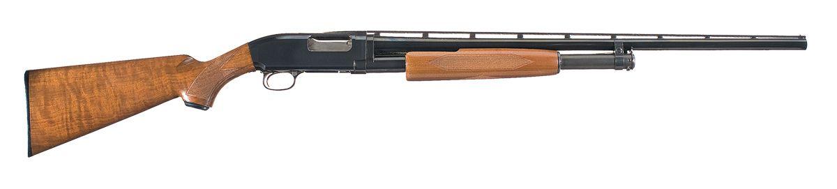 Standard markings and features, with single bead front sight on a plain barrel with 3 inch chamber, choked full. Smooth pistol grip stock with a Winchester vented recoil pad and 14 groove forearm. Length of pull 13 3/4".