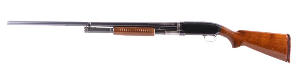 This is a Winchester Repeating arms Model 12, 12 gauge pump shotgun. The gun shows original condition and works flawlessly. The wood has normal wear with slight dings and a worn original butte. Serial Number 899583 andwas manufactured in the 1941.
