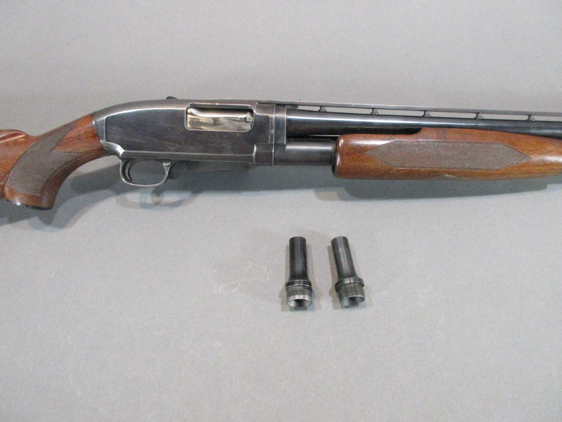 Winchester Model 12 Pump Action Shotgun- 28ga- 26" Ventilated Ribbed Barrel- Cutts Compensator- Checkered- 2 Extra Chokes- Very Good Condition- #1242610-1950