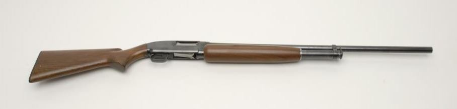 Winchester Model 12 pump action shotgun, 12 gauge, serial #1023008. The shotgun is in good to nearly very good overall condition with a 28” barrel with steel bead front sight and full choke. The barrel and magazine show approximately60-70% of their thinning blue finish while the receiver retains the majority its finish. The smooth wood stocks are in very good condition with small mars and compressions consistent with field use. The black plastic Winchester butt plateprovides a 14” LOP. The bore is very good, the action crisp and markings are sharp. Est.: $250-$450. (C+R).