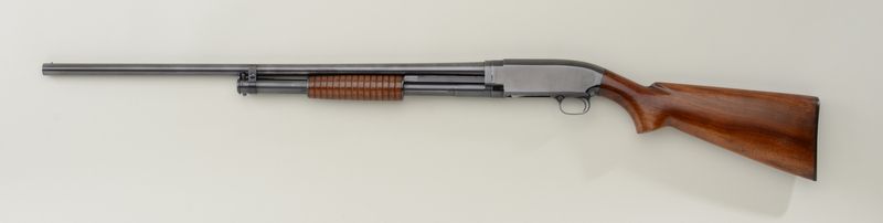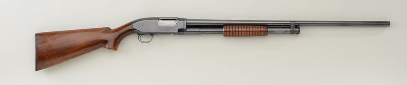 Winchester Model 12 pump action take down shotgun, 16 gauge, 2-3/4” chamber, Modified choke, blue finish, wood stocks, #718092. This gun is in overall excellent condition showing the majority of its original finish(only loss is area under the fore end stock); fine bore, crisp action, sharp markings, fine wood stocks. Est.: $350-$700.