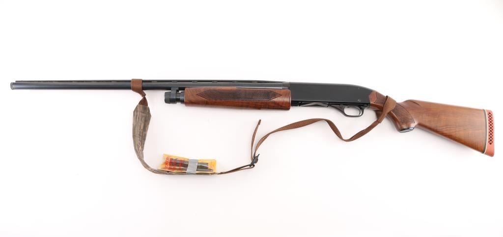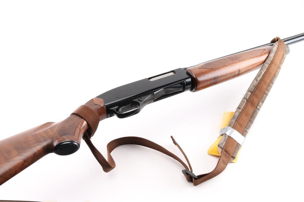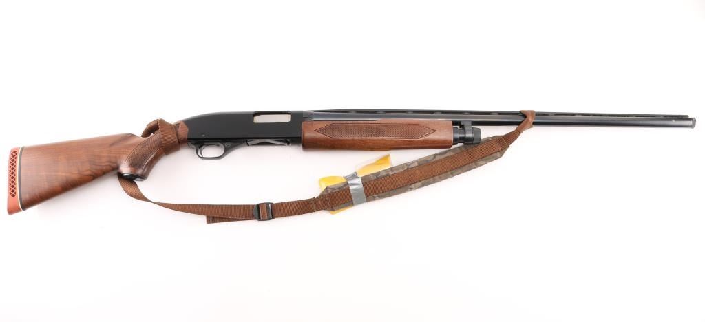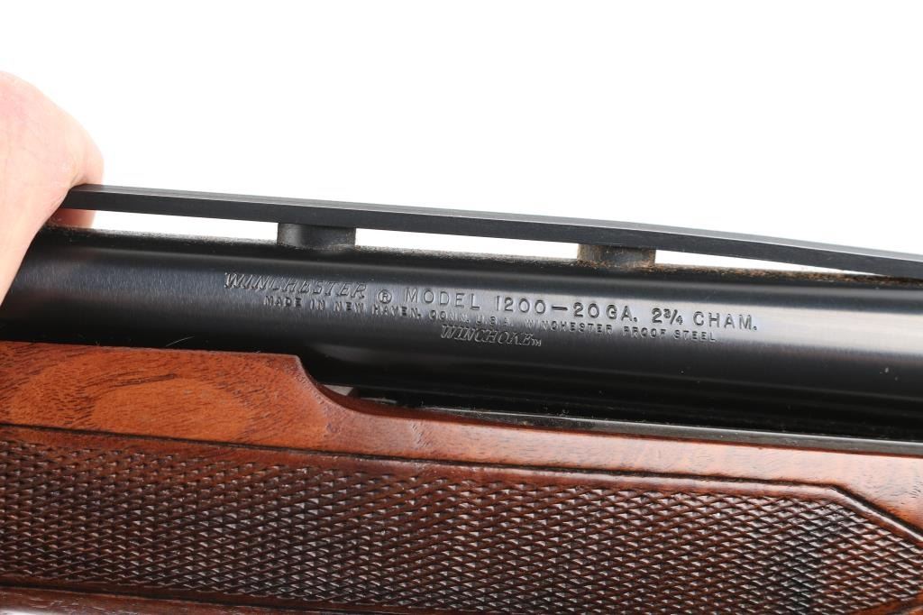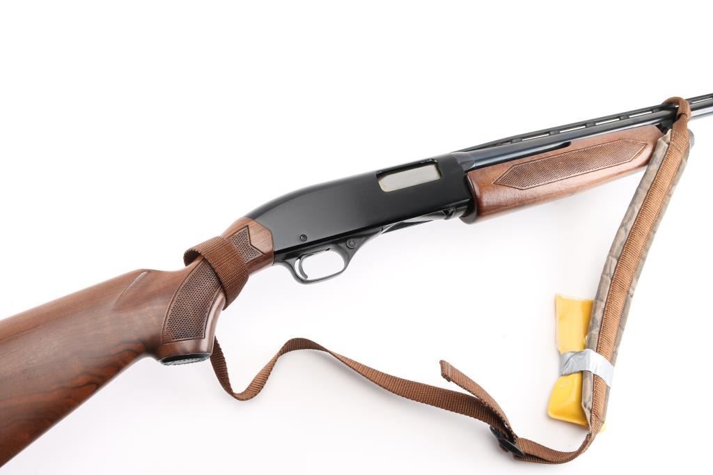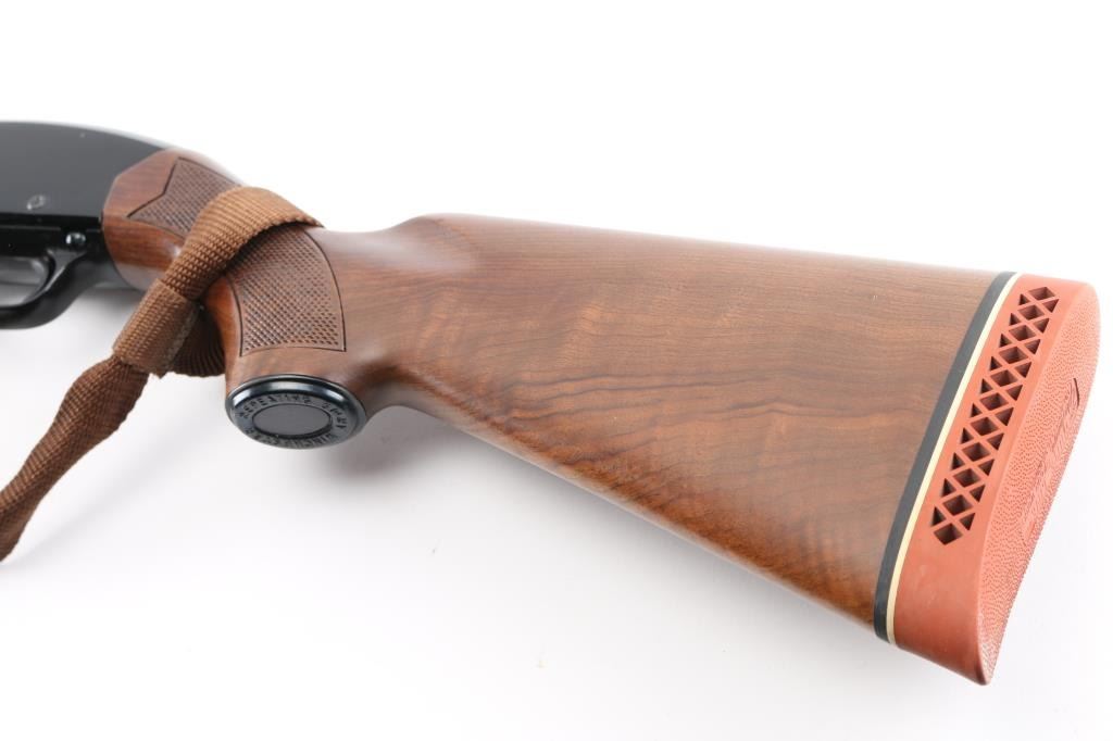 Slide action repeating shotgun chambered for 2 3/4" 20 gauge shells, manufactured 1965-83. Features a blued 28" vent rib barrel, MOD choke installed, half-length tube magazine, silver bead front sight, smooth trigger with beveled edges, push button safety, black finished alloy receiver, press checkered walnut slide handle and semi-pistol grip shoulder stock with steel grip cap, Pachmyer red rubber recoil pad & 13 3/4" LOP. Shotgun retains approximately 98% of its original finish with minor scratches. Action is smooth, the bore is excellent/bright and the wood stocks are excellent. Comes with Winchester Winchoke 3 Guns in One set, contains choke wrench, Full, & Imp. Cyl chokes, very good condition. NRA Condition-Excellent. Modern Firearm.