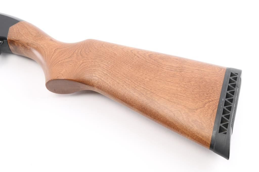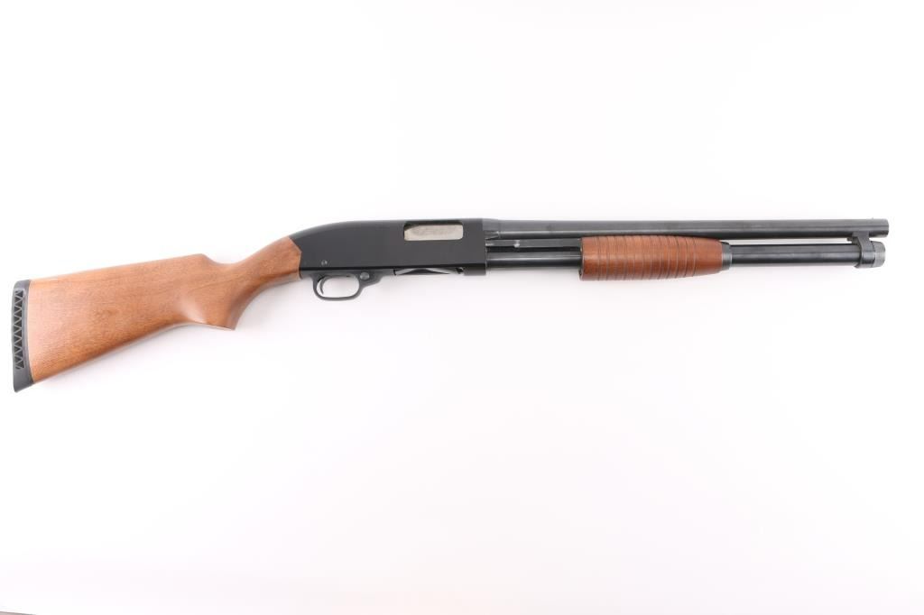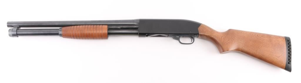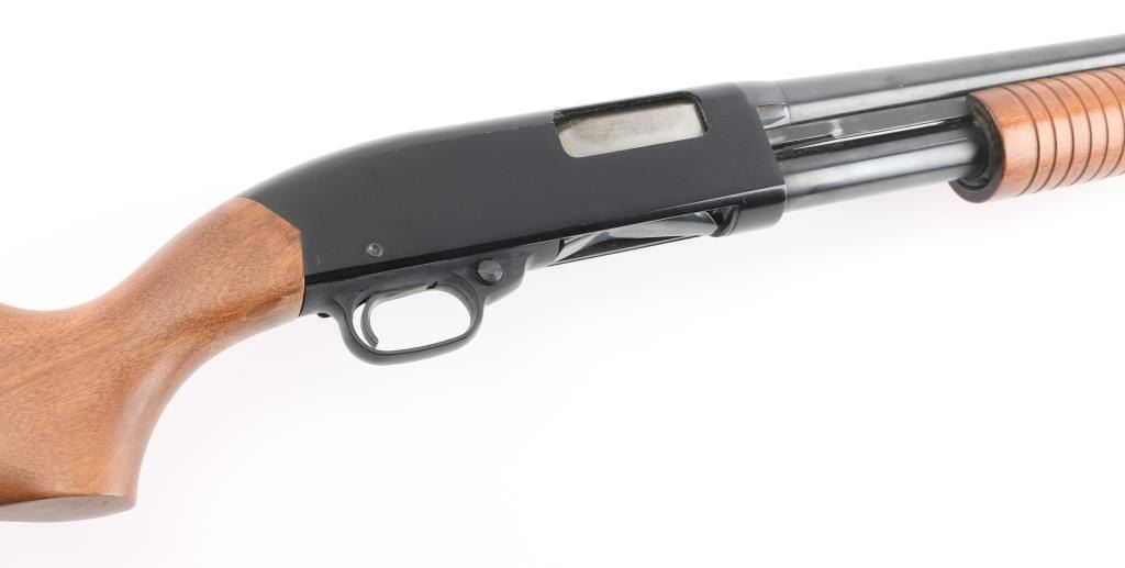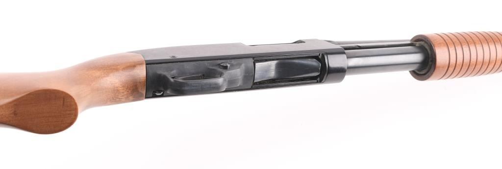 SN: L1334917 Pump action shotgun optimized for security or home defense use. Factory records date this circa 1982. Features blued finish, black anodized aluminum alloy receiver, black polymer trigger guard, 18" barrel, full length magazine tube, steel bead front sight, push button safety, grooved wood pump handle, smooth wood semi-pistol grip shoulder stock with ventilated rubber recoil pad. Cyl choke. Accepts 2-3/4" and 3" shells. Bore is dirty, appears good or better. Retains 90% finish with dings and scratches, handling marks. Wood is very good with scuffs. Condition is NRA Very Good++ *** Modern Firearm ***