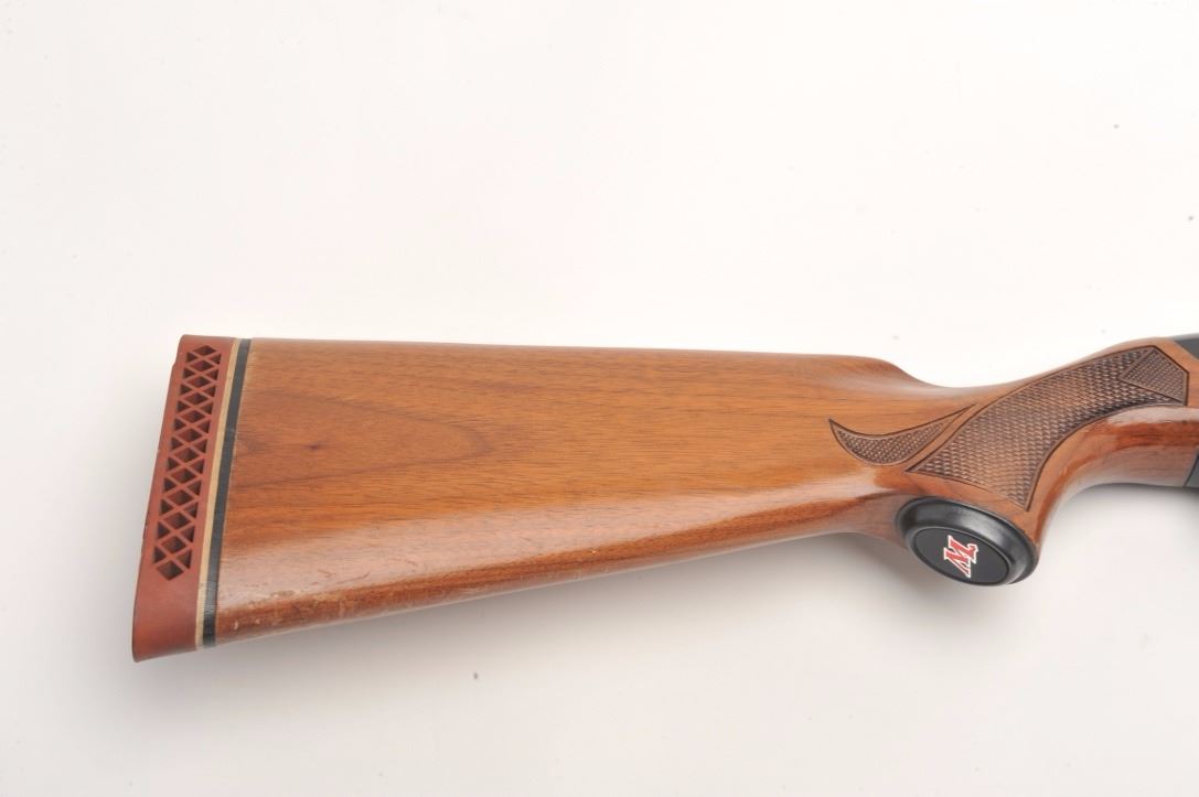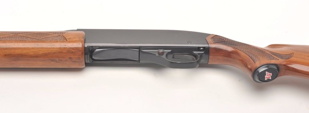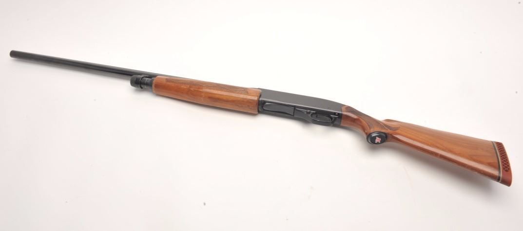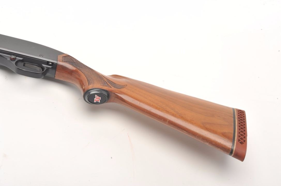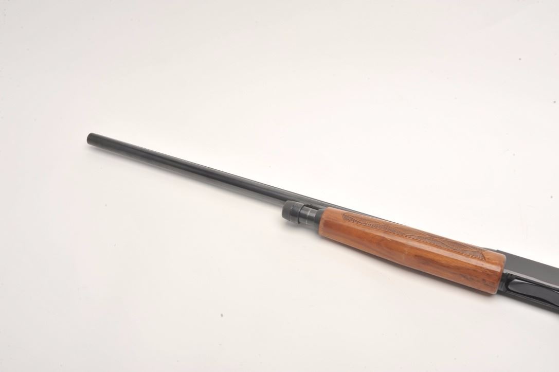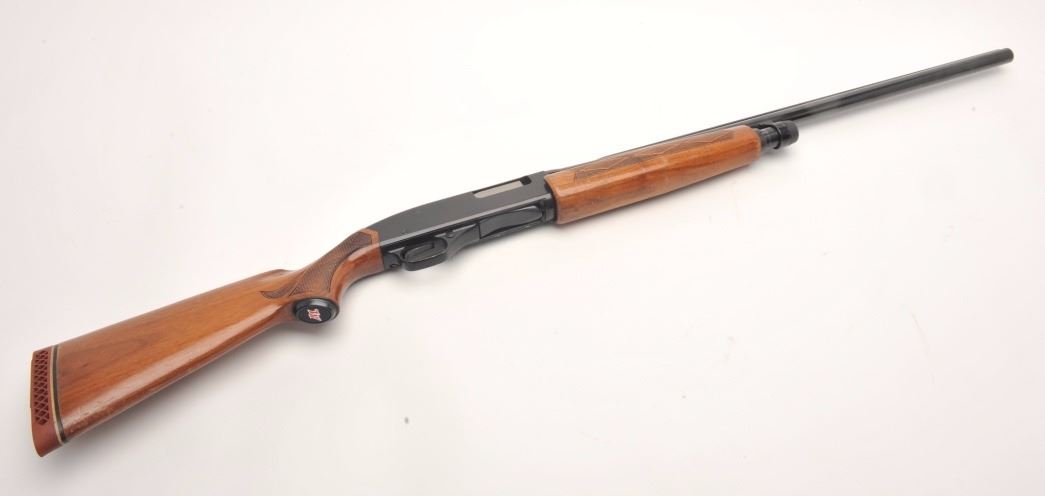 Winchester Model 1200 pump shotgun, 12 gauge, serial #241645. The shotgun is in very good overall condition with a 28” barrel with a full-length ventilated rib and steel bead front sight. The barrel and receiver retainnearly all of their blued finish with small mars and scratches noted. The checkered wood stocks are in good condition showing compressions, scrapes and some flattening of the checkering. The butt ends with aventilated rubber Winchester marked recoil pad and a 14” LOP. The bore is very good, the action crisp and markings are sharp. Est.: $200-$400. (Modern).