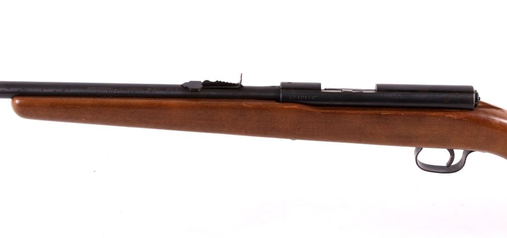 For your bidding pleasure is a Winchester Model 121 Y .22 Bolt Action Rifle. This rifle utilizes a 21" blue'd round barrel with a fixed blade front sight with an adjustable rear buckhorn sight. The barrel is marked "Winchester .22 S.L. or L.R. - Model 121 Y - Made in New Haven Conn. U.S.A" This Model 121 Y has a straight grain walnut stock and serrated trigger. Serial Number: Z212122. This firearm qualifies as a Curio & Relic Long Gun, and requires FFL Transfer or NICS Background Check.