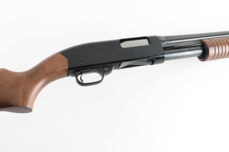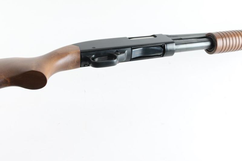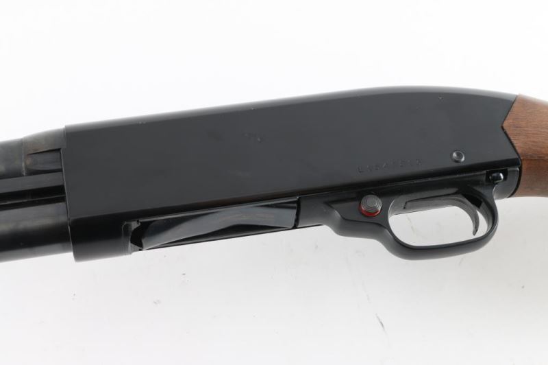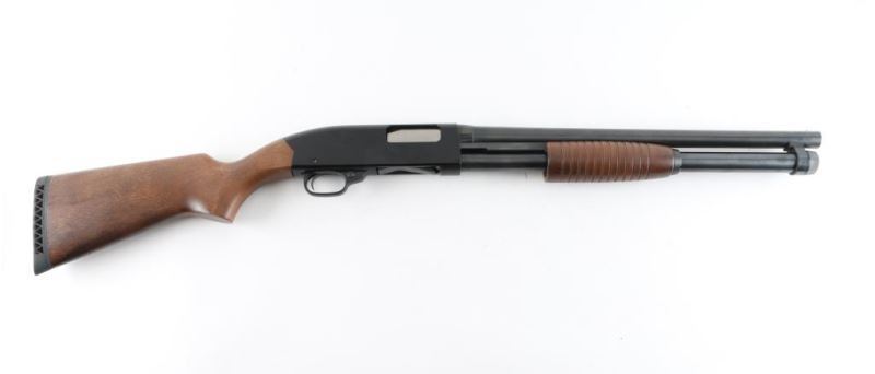 Sn: L1546813- American made slide action home defense shotgun chambered for 2 3/4" & 3" 12 gauge shells. Features a blued 18.5" barrel, silver bead front sight, full-length tube magazine, black finished receiver, push button safety, beveled trigger, grooved hardwood slide handle and plain pistol grip shoulder stock with factory recoil pad & 14" LOP. Bore looks dirty. Metal finish looks very good. Wood stocks are fine. Condition is NRA Very Good ***Modern Firearm***