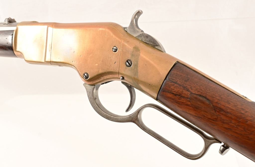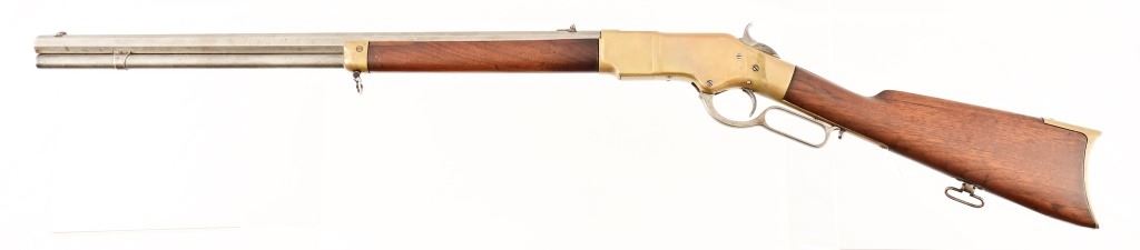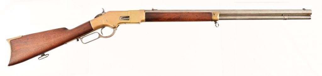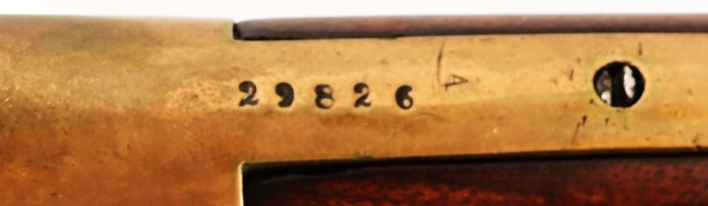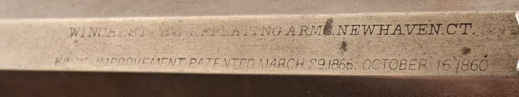 24" octagon barrel. Barrel address reads; "Winchester's Repeating Arms, New Haven C.T. King's Improvement Patented, March 29, 1866. October 16, 1860." S/N 29826, circa 1870.