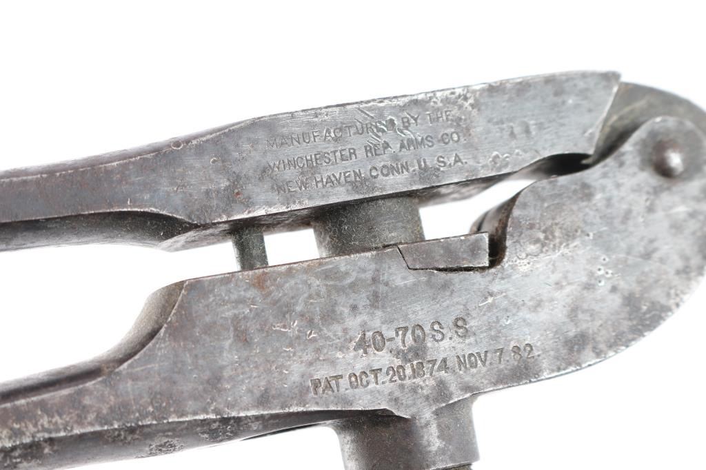 In 40-70 straight Sharps caliber. Good condition. Some blue in dark patina with minor rust and erosion. Well marked.