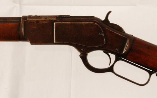 ANTIQUE Octagon barrel, long mag, steel butt, dust cover, lever action with lock. Barrel measures 24"