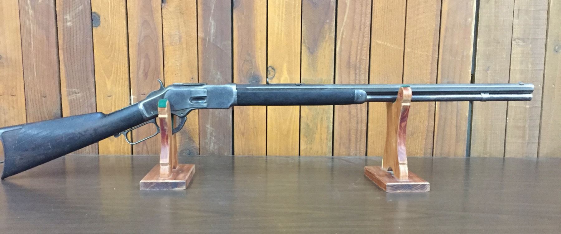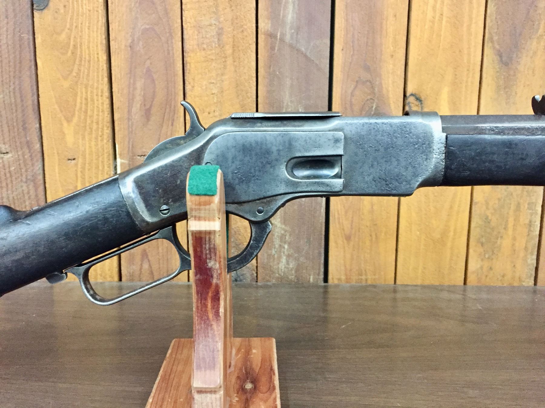 Description: Presented for sale in this lot, we offer a nice, Winchester Model 1873 .38-40 caliber lever action rifle. One of the most popular models ever, the Model ’73 is often referred to as “The Gun That Won The West.” This one has octagon barrel and full length magazine tube. The wood and other parts appear to be original. It shows much use on the exterior. The bore seems pretty good. There is still rifling evident when a bore light is shown down it. Looks like it could use a good cleaning. Maker: Winchester Approx. Age: 1886. Serial# 221203B Size: Barrel measures 24” with an overall length of 44”. Condition: Fair for its age, wear expected. Everything appears to function correctly. Please look closely at the pictures - they are an important part of our description. Shipping: There will be a $15 handling / packaging fee for shipping this lot. The actual cost of postage will be added on top of that. *****ANTIQUE - This firearm DOES NOT REQUIRE an FFL Transfer*****