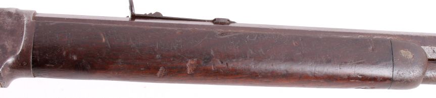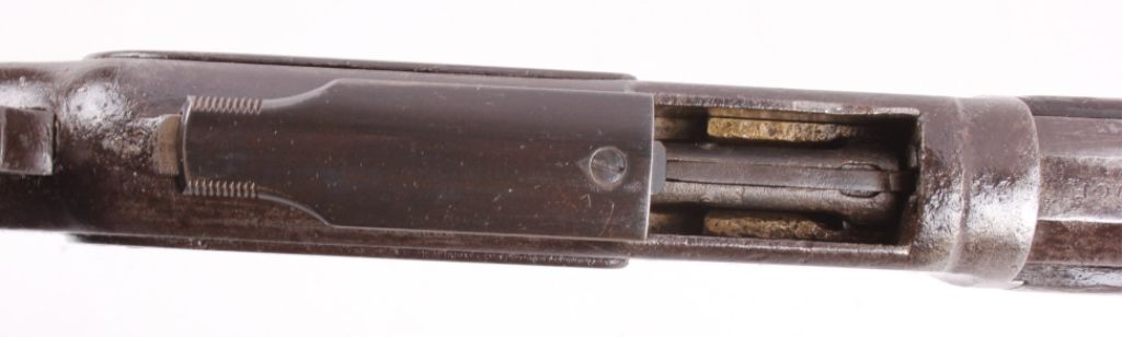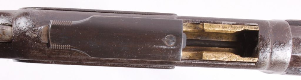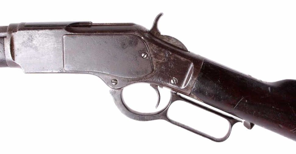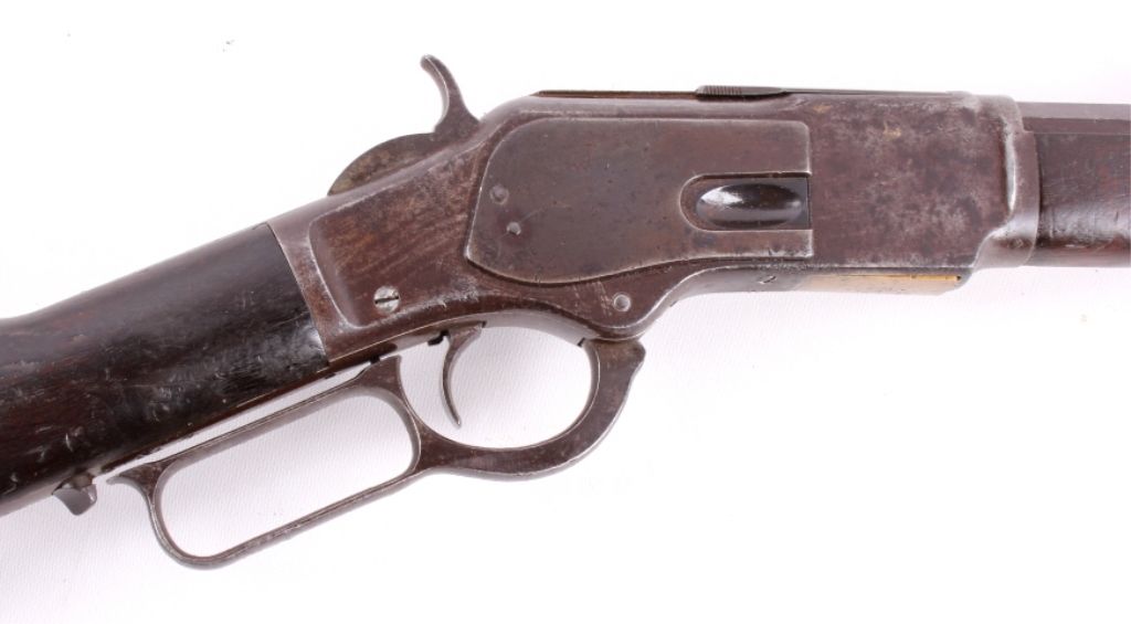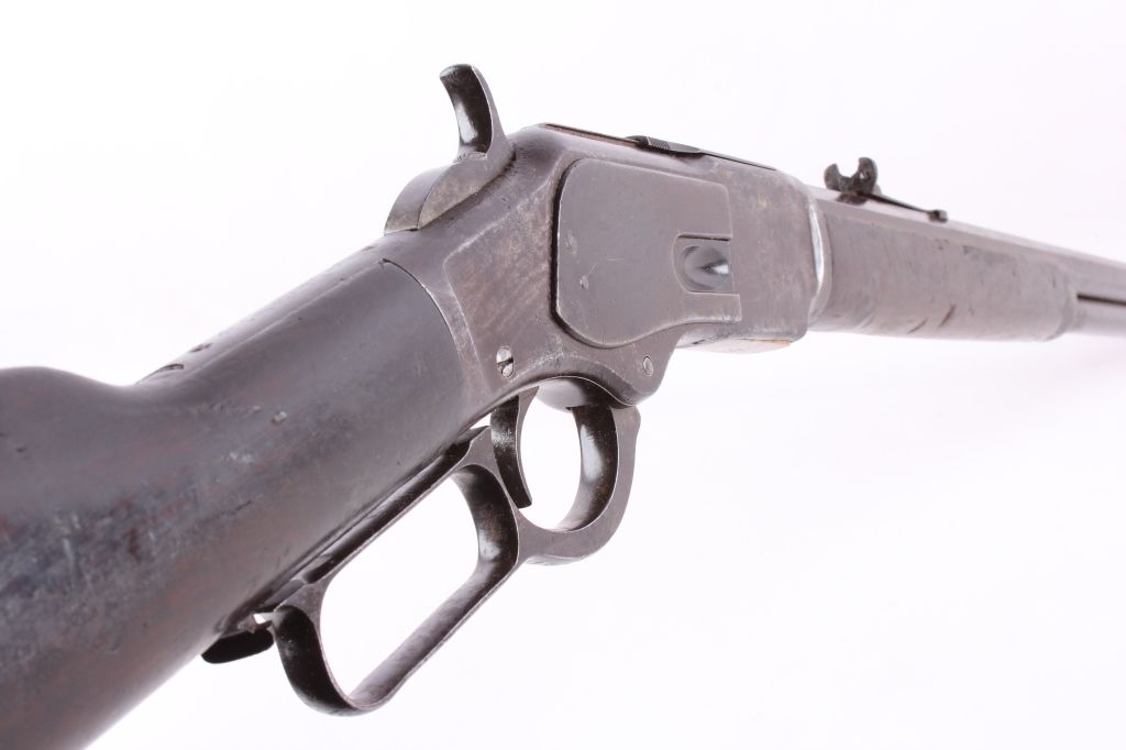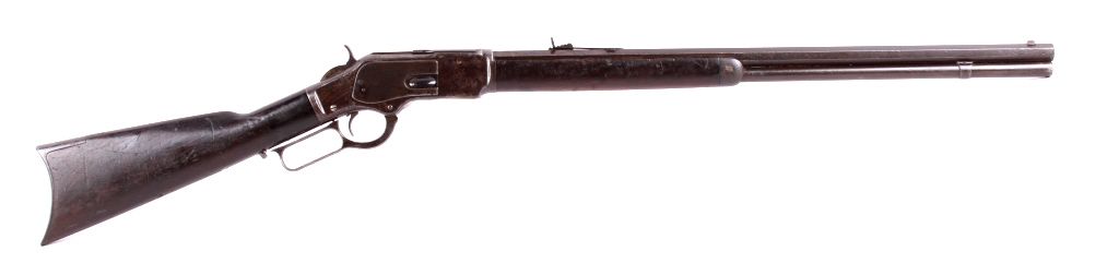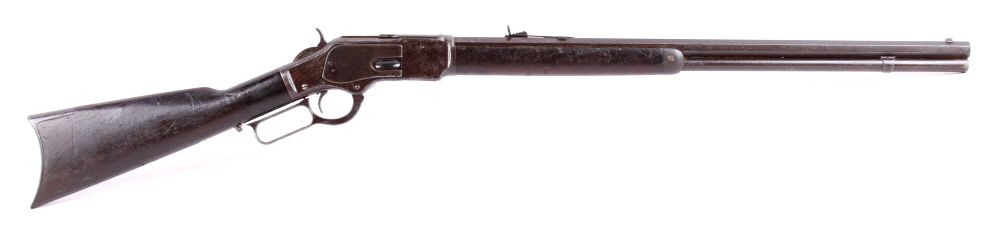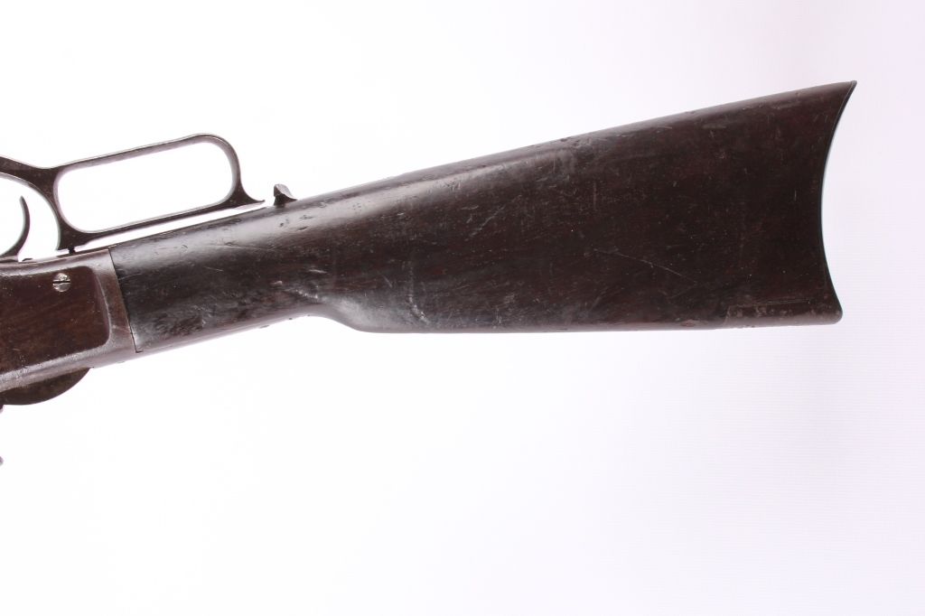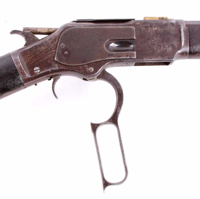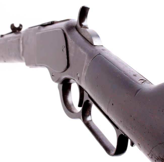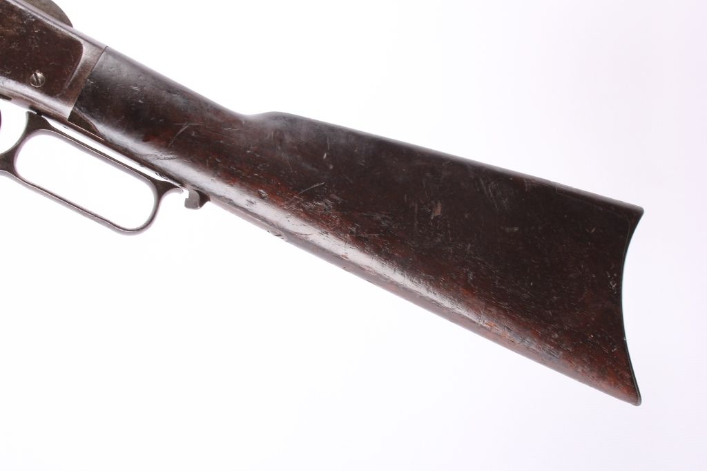 This is a Winchester Model 1873 Third Model rifle in a 38 WCF caliber with an octagon barrel. The rifle has a serial number of 465***B, placing this as manufacture date 1893. One of the most successful, andcertainly one of the most famous Winchester rifles was the Winchester Model 1873. The model 1873 is the true "Gun That Won the West." The 1873 shows the original coloring on the receiver and barrel with original goodcondition wood. The rifle also has the receiver cover and lever lock with original sights. This is a very desired and rare Winchester. The rare rifle shows pitting on the barrel and scratching along the receiver,but overall a very desirable working good condition gun for being well over 100 years old. (does not require FFL for transfer or shipping)