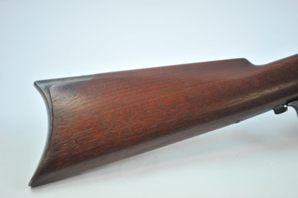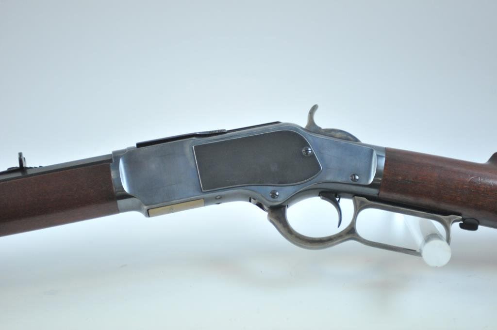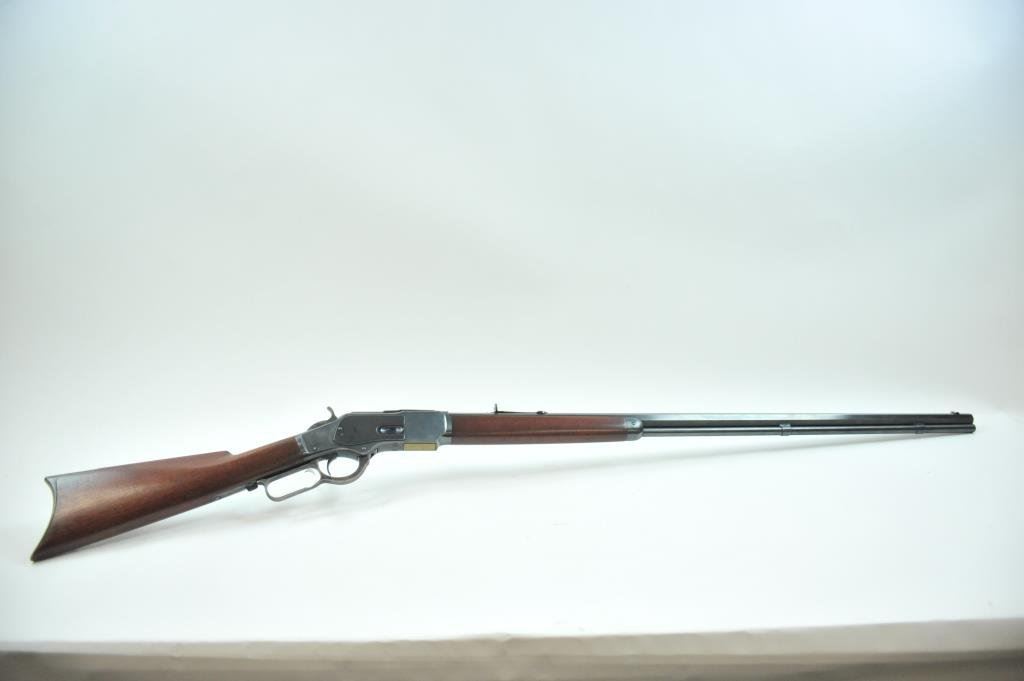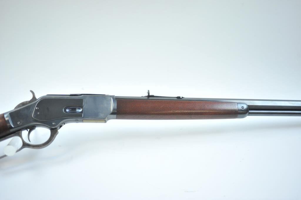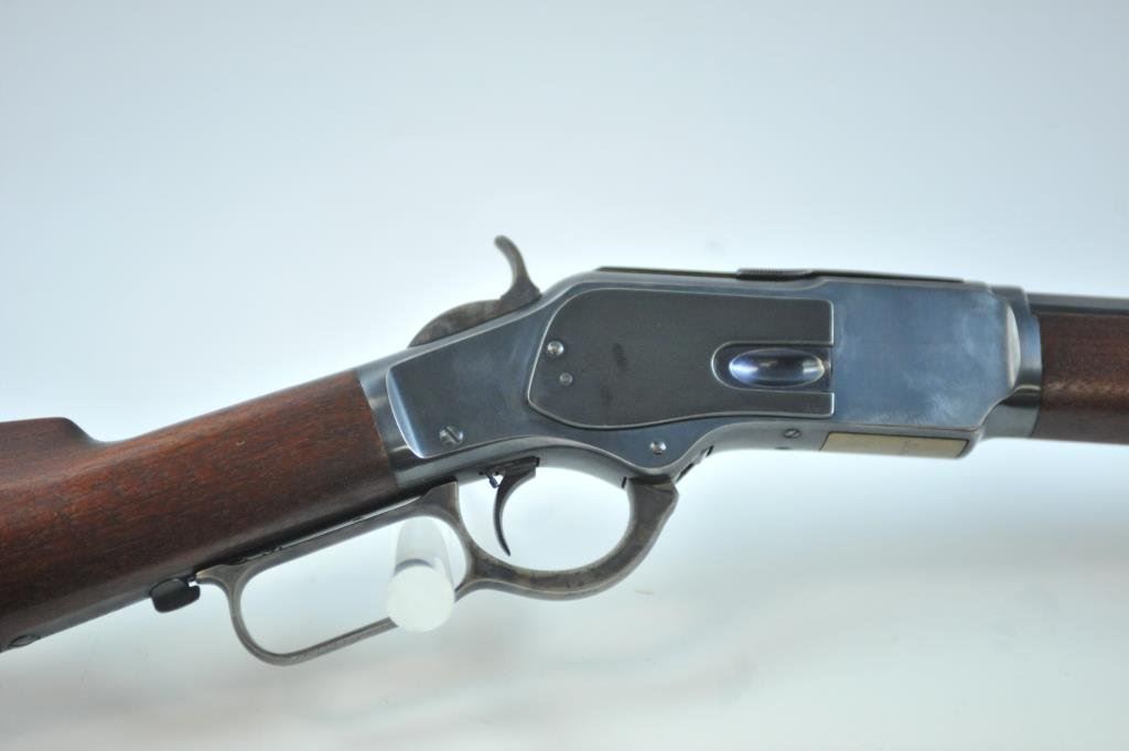 with 32” octagon barrel, set trigger, full magazine, 2 barrel bands, S/N 220750. Shipped Nov. 19, 1886 to order # 10248. Restored to excellent condition by Rogers Winchesters Restoration service. Extra-long 73’s are rare and desirable. (Antique) Est.: $6,000-12,000