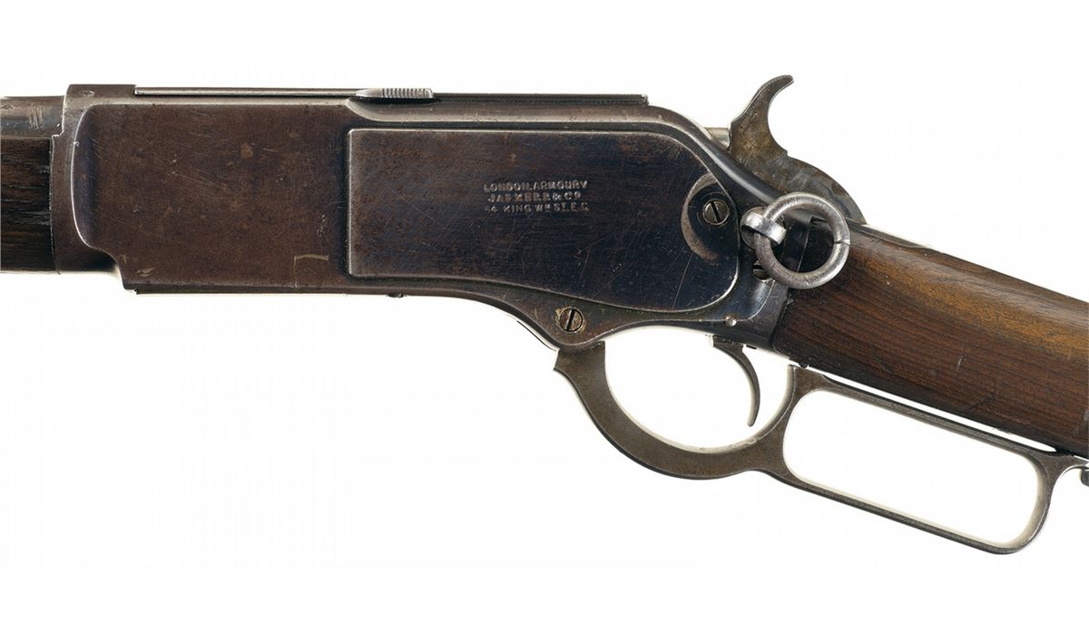 Winchester Model 1876 Lever Action Saddle Ring Carbine with London Armoury Marking