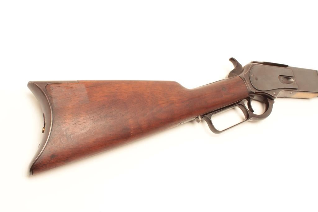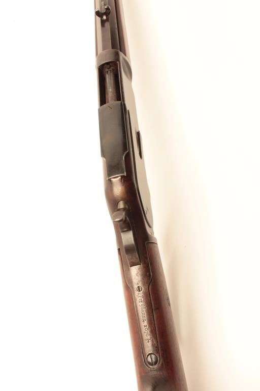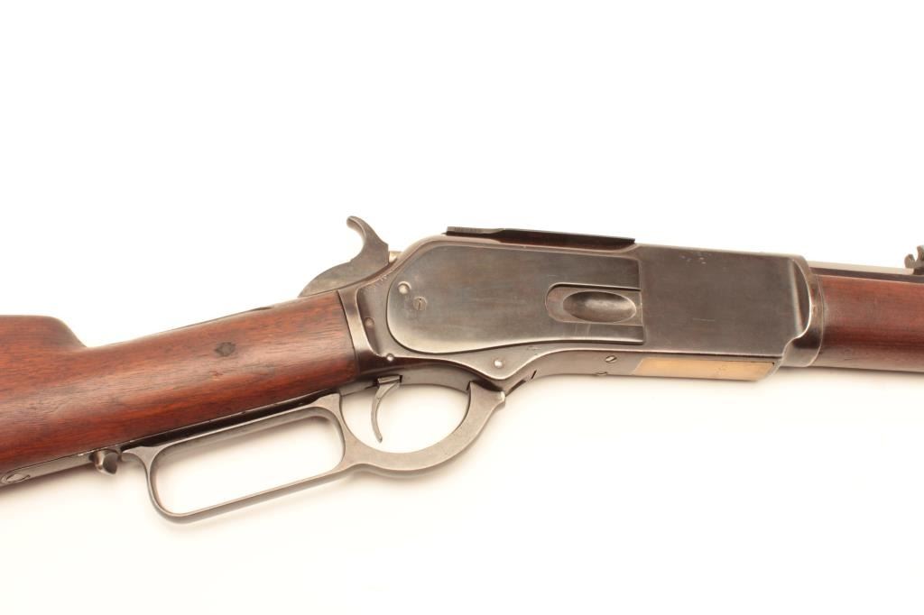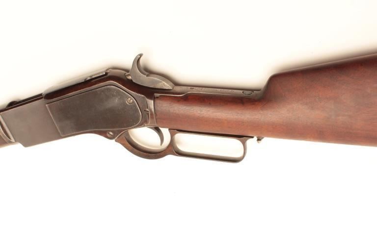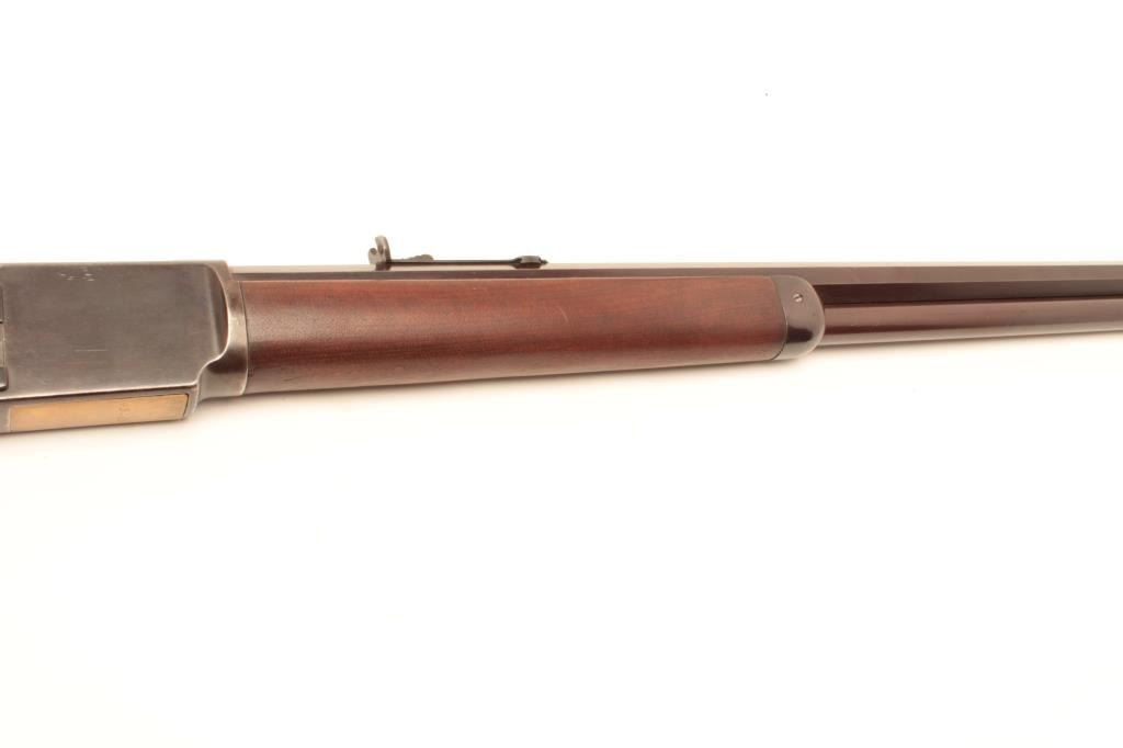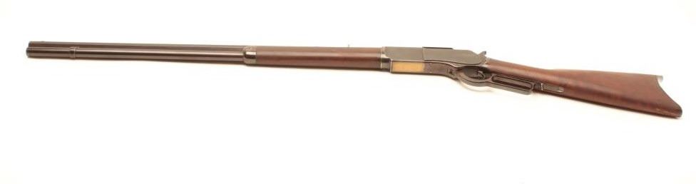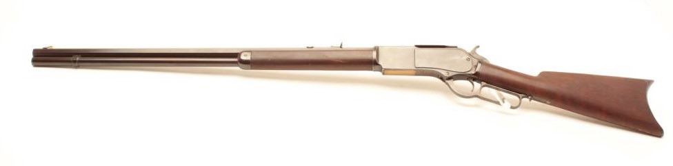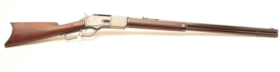 Winchester Model 1876 lever action rifle, .45-60 caliber, 28” octagon barrel, blued finish, wood stocks, S/N 29162, in overall good condition with some refinishing and minor restorations, good action, overall good wood. (Antique) Est.: $1,500-$3,000.