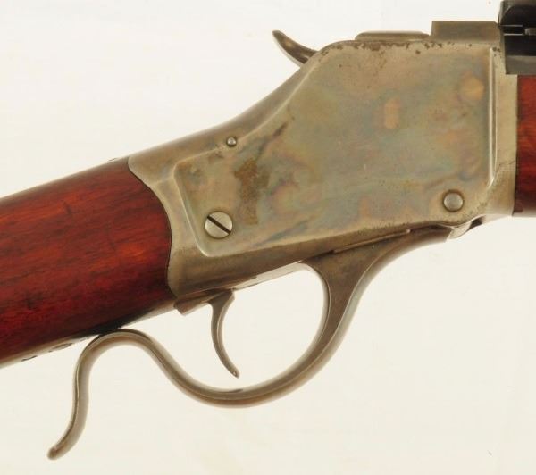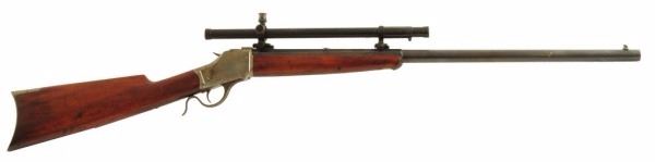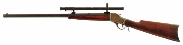 Circa 1892. Period Wollensack 4X scope. Early Octagon frame. .32-40 Caliber, 26-3/4" half-round barrel. Standard crescent butt wood, early octagon frame. 95% barrel blue thinning, excellent bright bore. 95% case color on frame. Wood is very good with use dings. Sharp markings, believe tang has been changed. Antique.