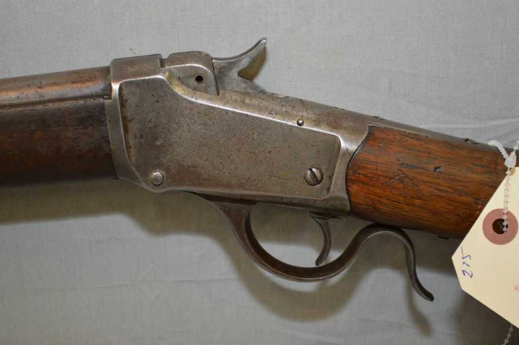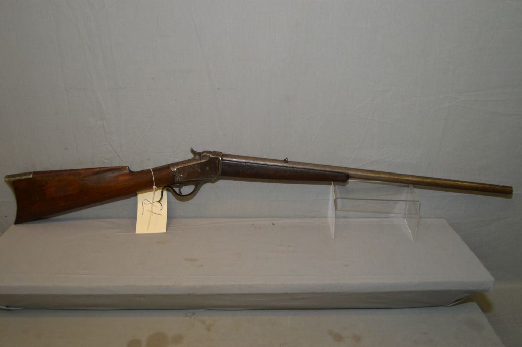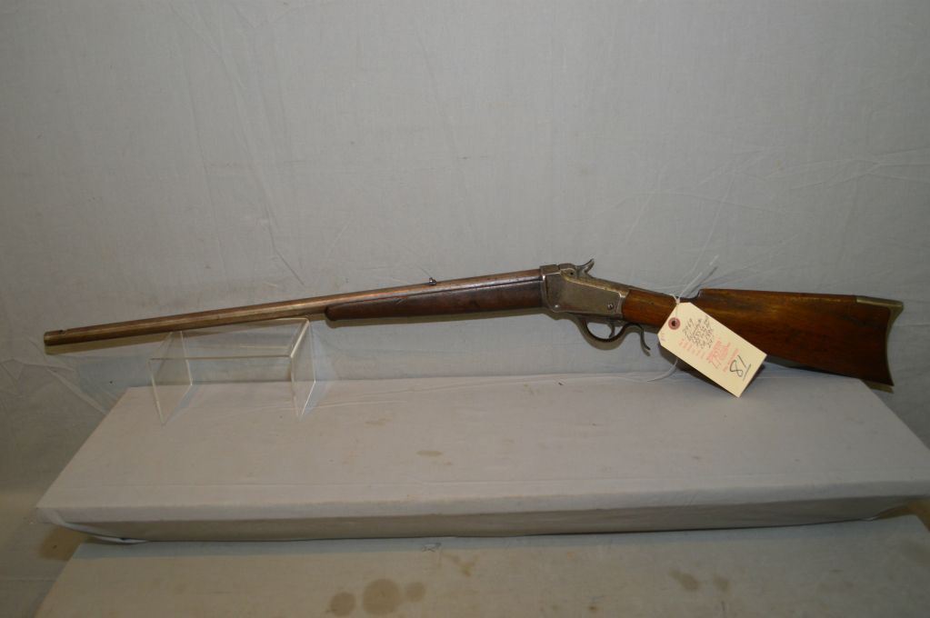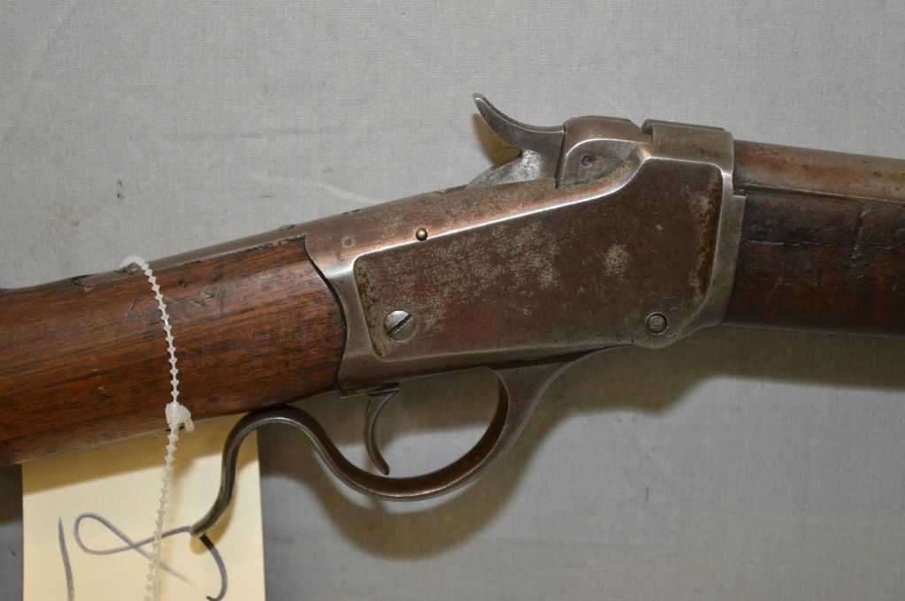 Winchester Model 1885 Low Wall Early 2 nd Year Production Circa 1886 .22 Long Rimfire Only Falling Block Rifle w/ 24" rnd bbl [ traces of faded blue finish turning brown, barrel sights, also traces of flaking case color turned silver on receiver, fair wood w/ebony tipped forend, couple of slight chips, ( 86 ) ] Ser # 2969