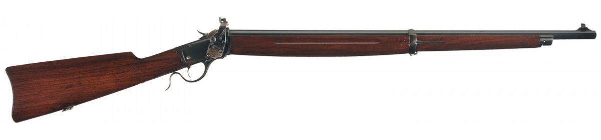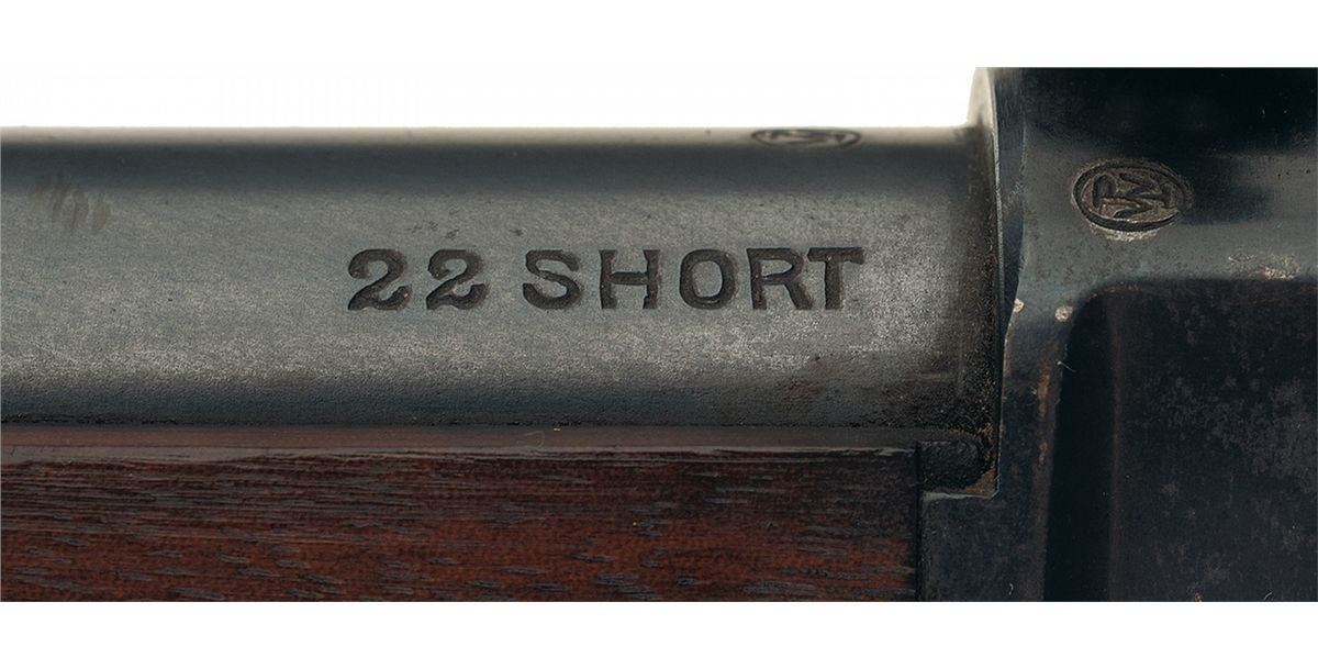 Often referred to as the Winder Musket after the acclaimed marksman Colonel C.B. Winder. Manufactured circa 1922. Standard blade front sight and Lyman receiver peep sight adjustable for windage and elevation. Left side of barrel marked with the two line Winchester address/patent dates and "22 SHORT" at the breech, as well as the Winchester oval proof, which is also marked on the top left side of the receiver. The three line Winchester trade mark on the upper tang. Mounted with a smooth full walnut forearm with finger grooves and straight grip stock with a steel carbine buttplate and sling swivels.