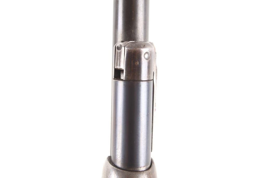 ramp base. The 24” round barrel retains about all the bright blue as does the short magazine tube that