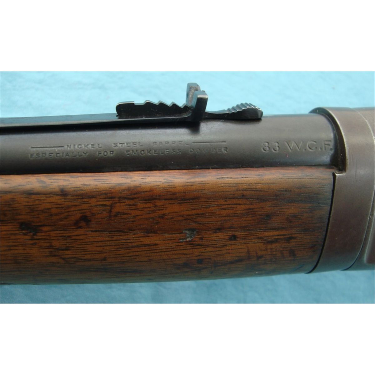 #155964; 33WCF w/22" bbl. Takedown model w/bright bore & action functions crisply. Gun shows a nice even blue to brown patina. Stock is solid & in good overall condition. Includes original plastic Winchester butt plate. A nice example of the Light Weight Takedown model.