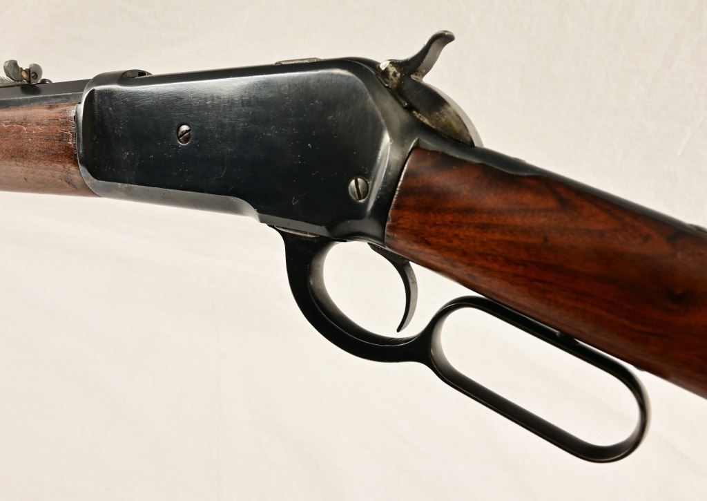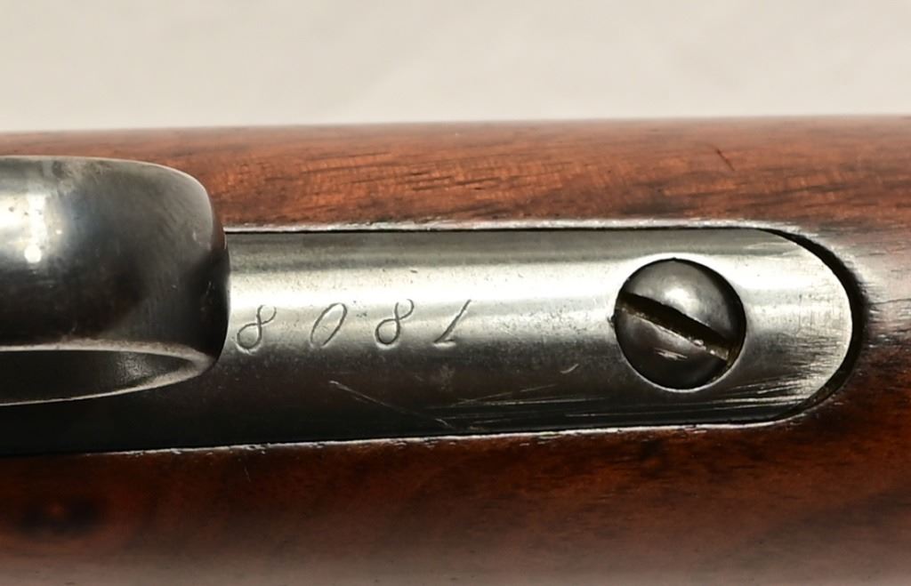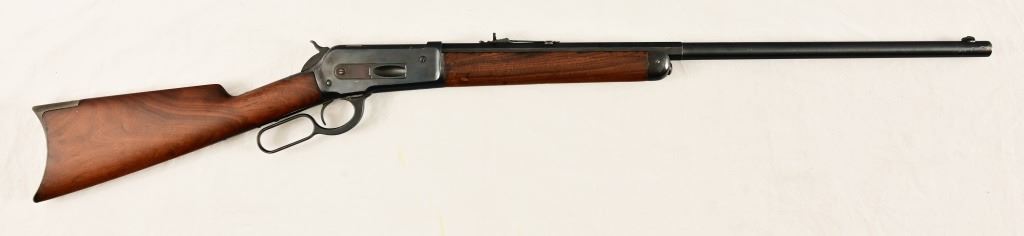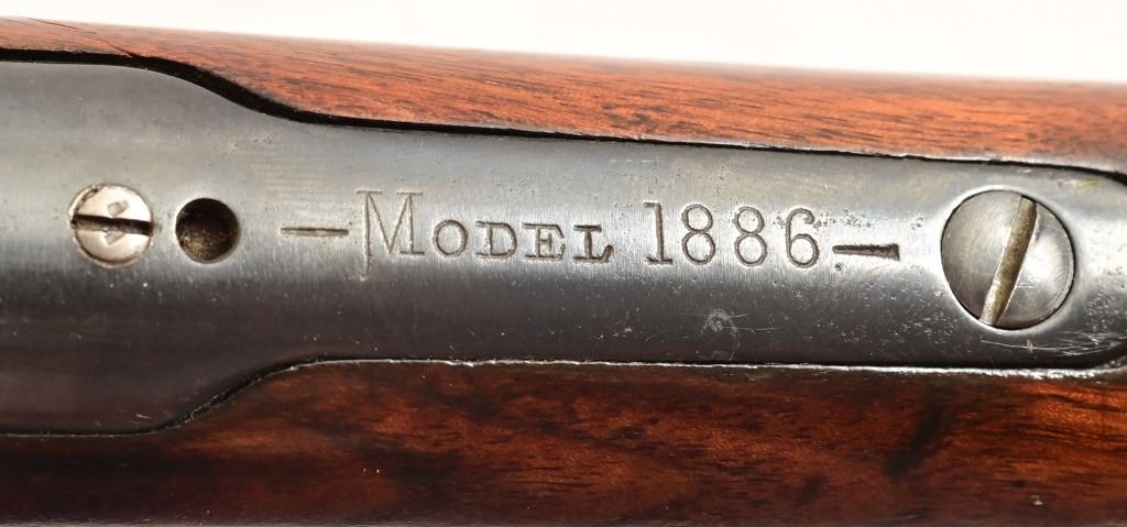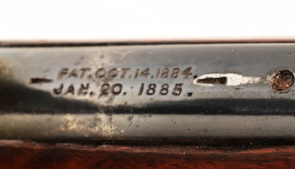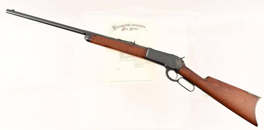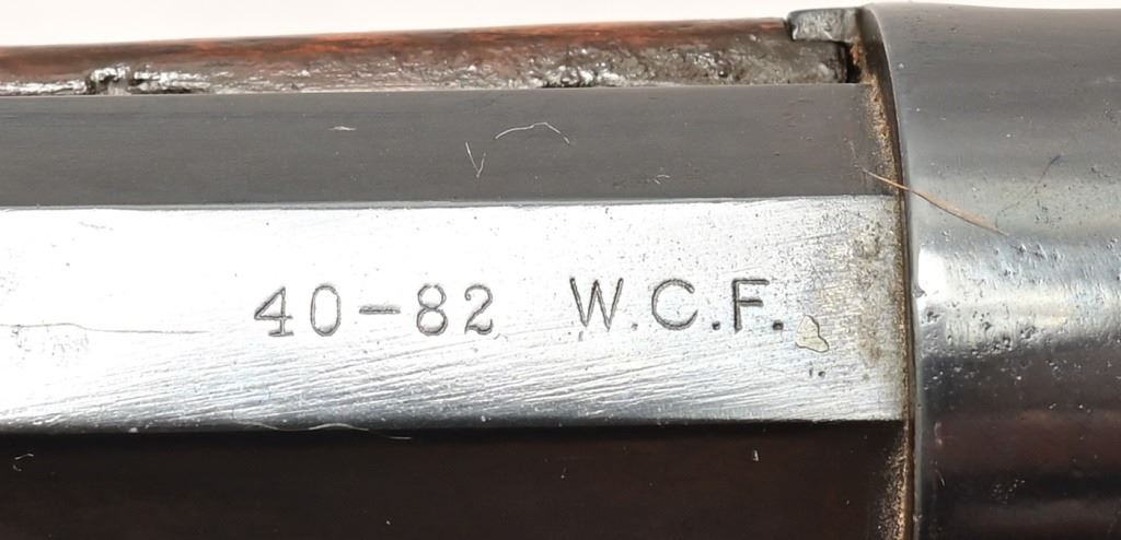 Button magazine .40-82 W.C.F. rifle, 26" half octagon barrel. Marbles rear sight. S/N 8081, factory letter shows shipment September 17, 1887.