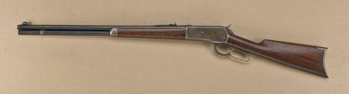 Winchester Model 1886 lever action rifle, .33 W.C.F. cal., 24” round barrel, blue finish, wood stocks, #146961A. This gun is in overall very good condition showing approx. 30% original blue with balance gone to plum andbrown patinas; very good bore, crisp action and markings, very good stocks showing some scattered mars and wear from carry and storage; crescent steel butt plate. Est.: $1,250-$2,500.
