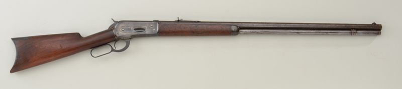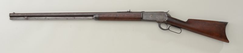 Winchester Model 1886 lever action rifle, .38-56 WCF cal., 30” octagon barrel, blue and case hardened finish, wood stocks, #81213. This gun is in overall good to very good condition showing traces of plum brown inprotected areas of barrel, silvery toning to the case colors on the receiver, fair + bore that may clean; good wood stocks with usual old mars and dings from carry and storage. Est.: $1,800-$2,000.