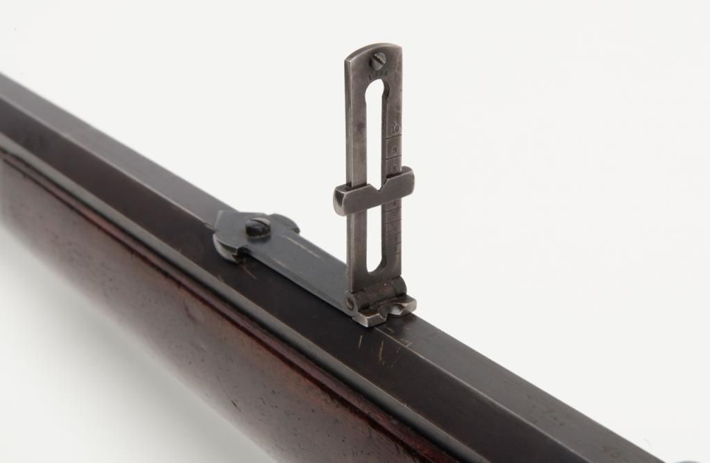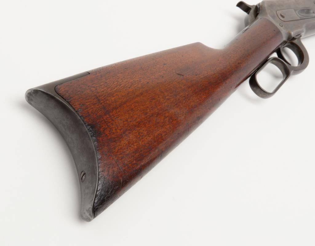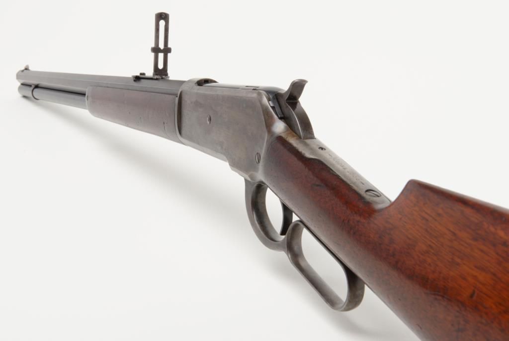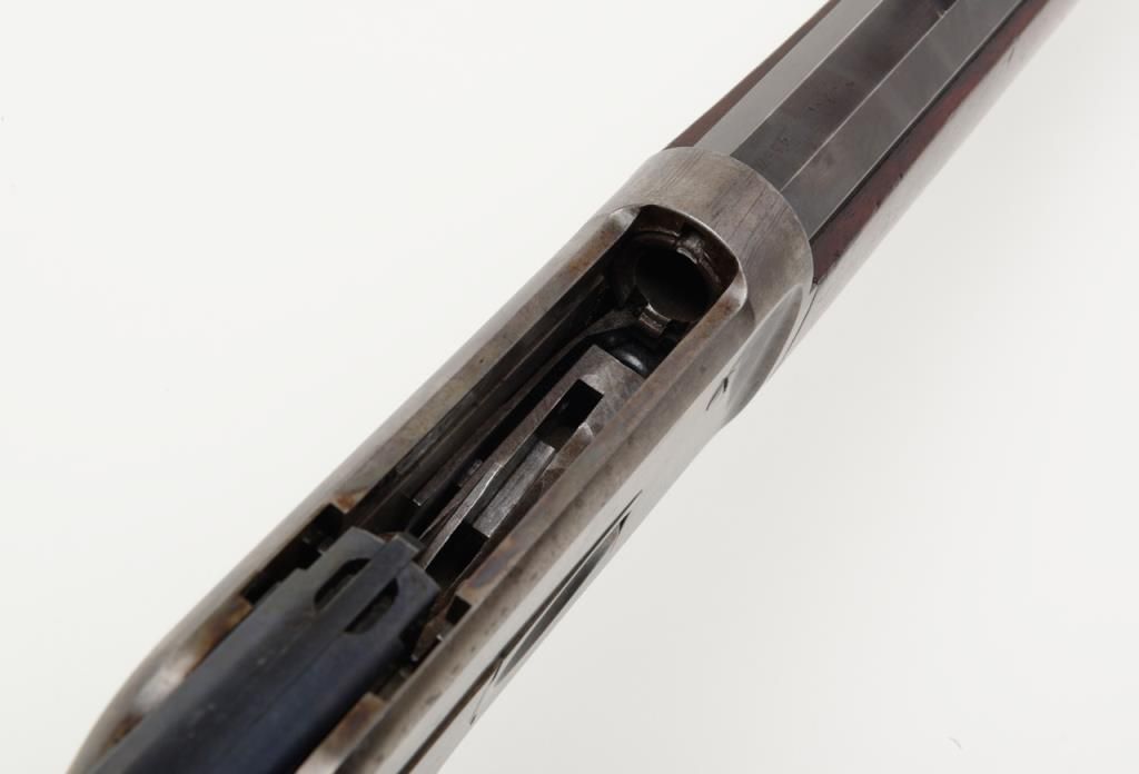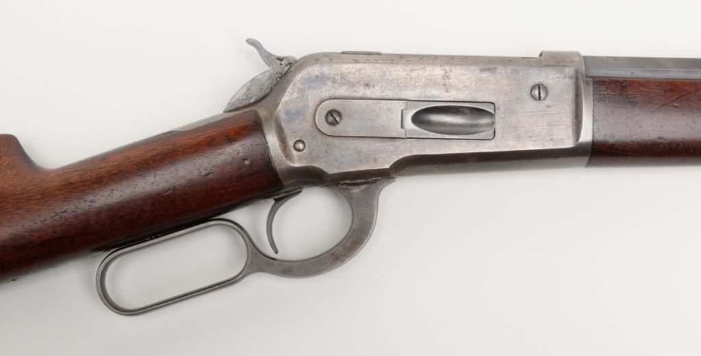 Winchester Model 1886 lever action rifle, desirable .45-70 cal., 26” octagon barrel, blue and case hardened finish, wood stocks, #87682 in overall very good to near fine condition showing the majority of its muted original blue finish onthe barrel and loading tube with some scattered spots of erosion and scratches from storage; considerable original muted case colors with balance gone to silvery toning; crisp action, sharp markings and very good + bore; very good +wood stocks with scattered minor old mars and scratches from carry and storage, replaced front sight blade. From an old Texas collection. (Antique). Est.: $3,000-$6,000.