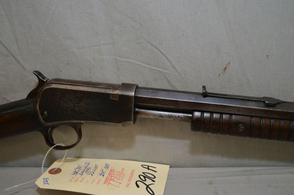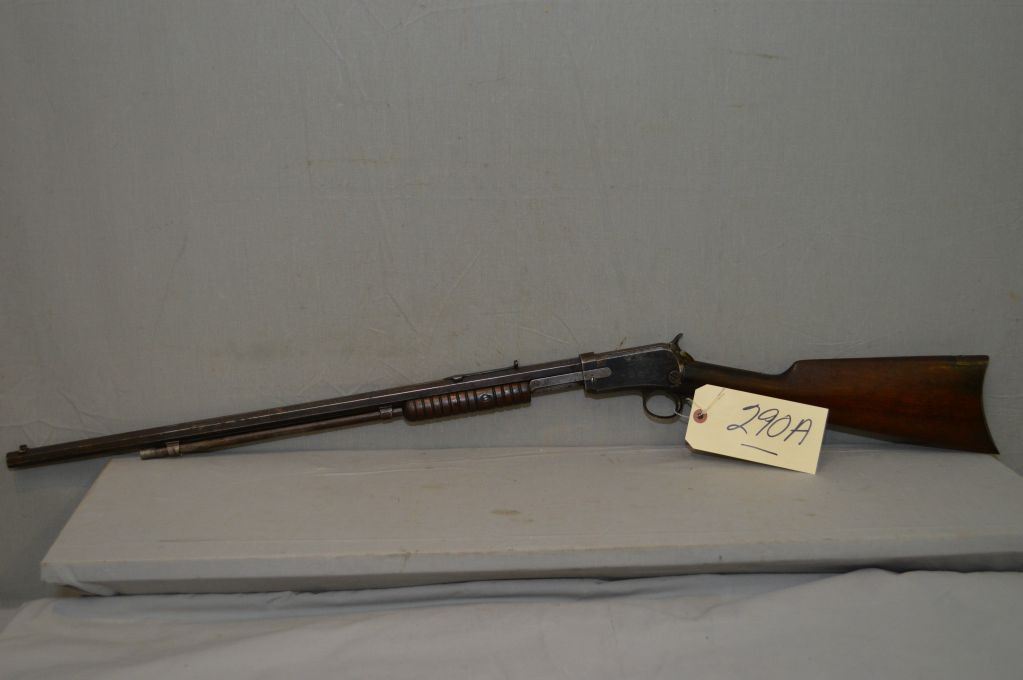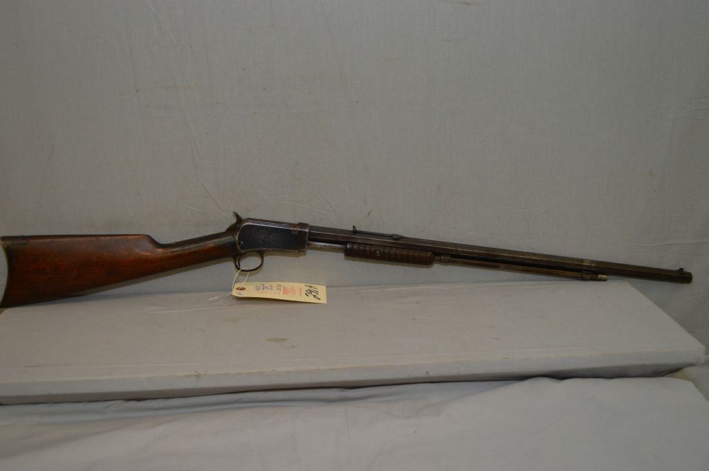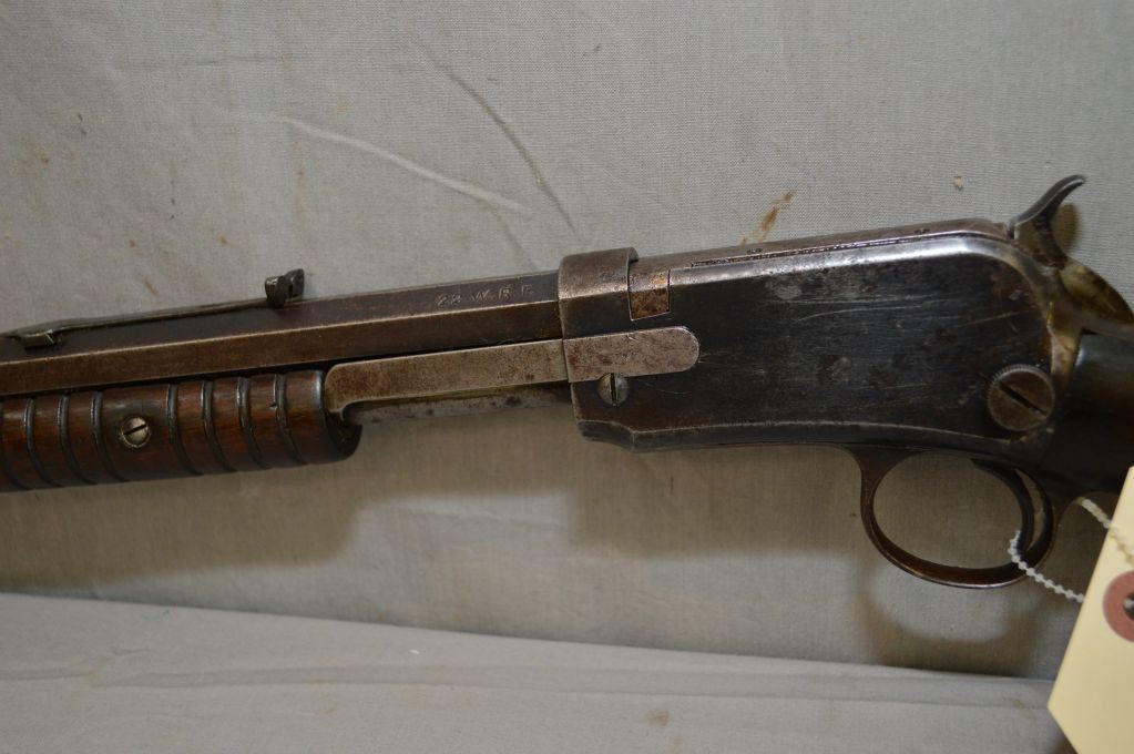 Winchester Model 1890 .22 WRF Cal ONLY Tube Fed Pump Action Rifle w/24" octagon bbl [ faded patchy blue finish, barrel sights missing the lift, fair wood, missing tang screw, needs hammer spring , Circa 1912 ] Ser # 465865