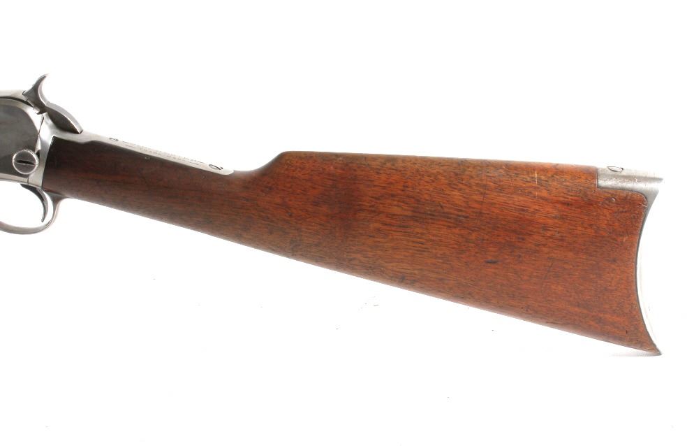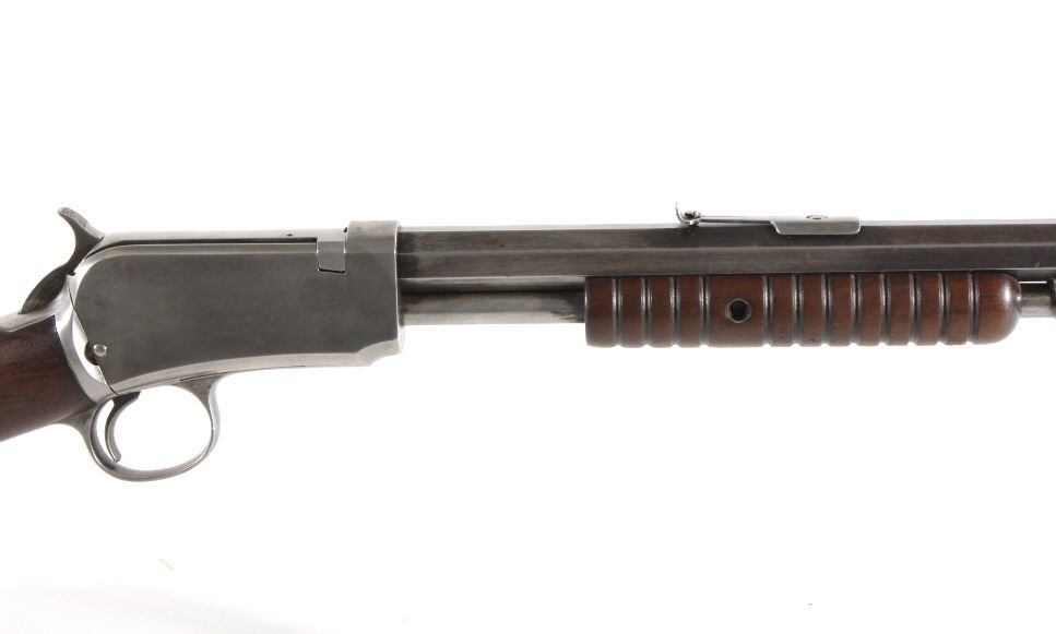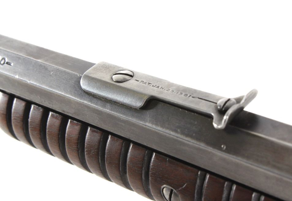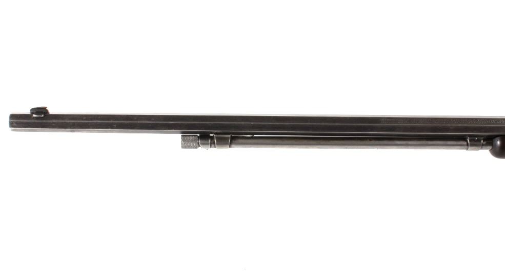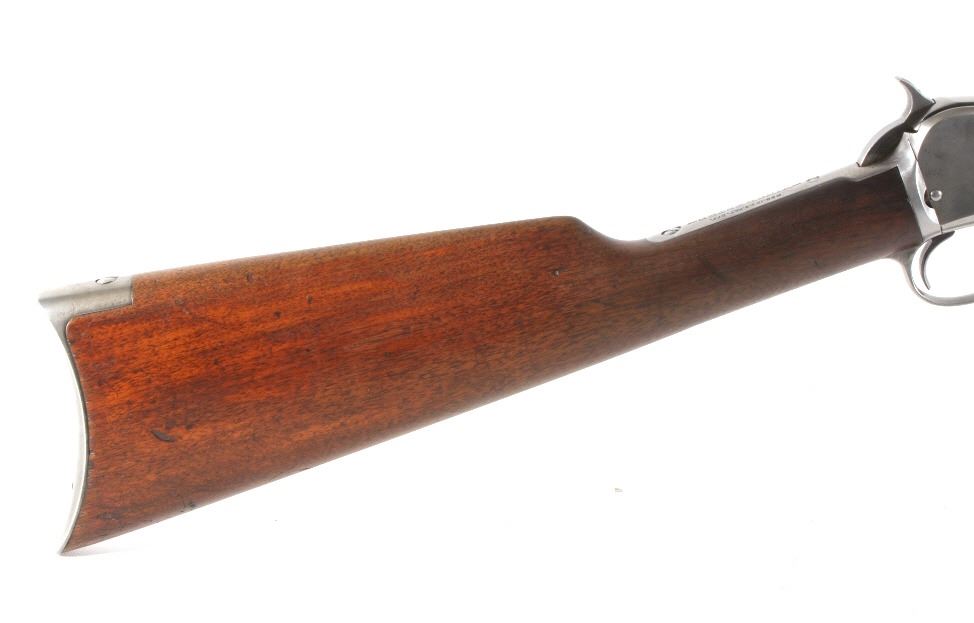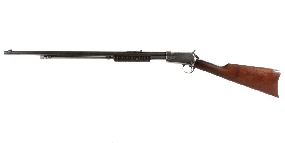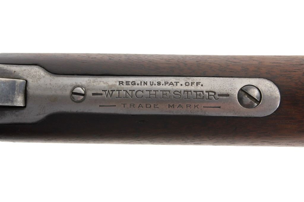 For your consideration is a Winchester Model 1890 .22 WRF rifle. This Model 1890 is chambered in the scared an collectable .22 WRF cartridge. The rifle features a 24" octagonal barrel with dovetailed front sight and buckhorn rear sights. The barrel is marked "Manufactured by the Winchester Repeating Arms Co. New Haven Conn. U.S.A. Pat. June. 26. 88. Dec. 6. 92. Nov. 27. 06. May 30. 1911. Model 1890" and ".22 W.R.F." The original blue'd finish has worn over its 100 years of use. The original straight grain walnut stock is in good condition and shows dents and dings associated with its use and age. The gun is in good condition overall with a light patina having formed. The magazine tube appears to be stuck. The serial number denotes the date of manufacture to 1914. Serial Number: 555921. This firearm qualifies as a Curio & Relic Firearm, and requires FFL Transfer or NICS Background Check.