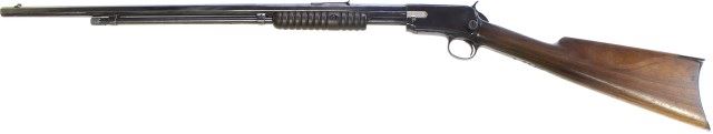 pump action rifle 24" barrel, reblued finish with walnut stocks. Good smooth action. Modern. Est. 300-500