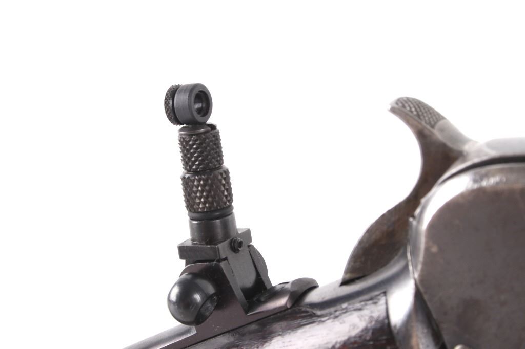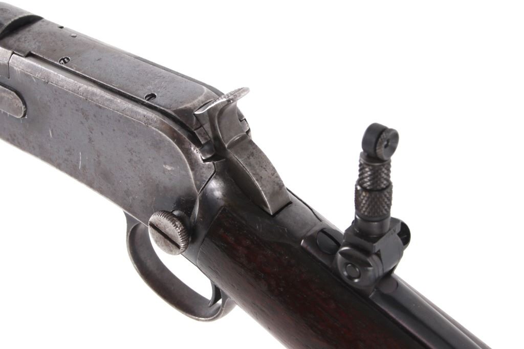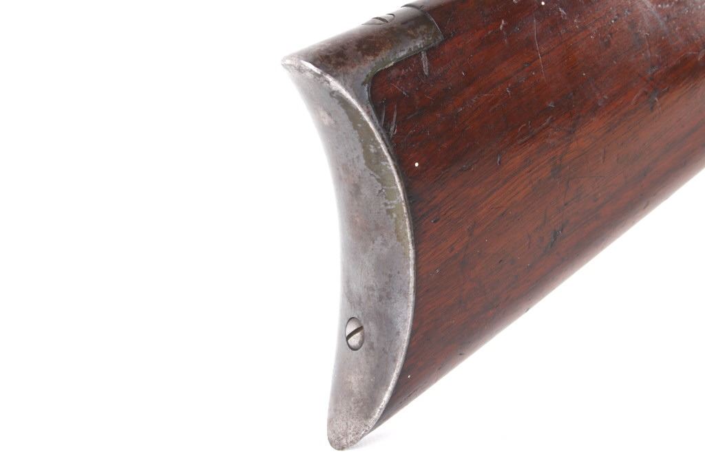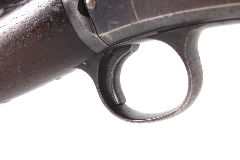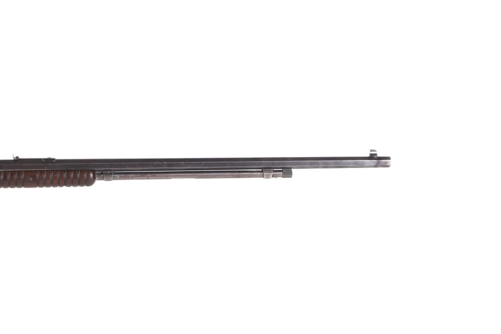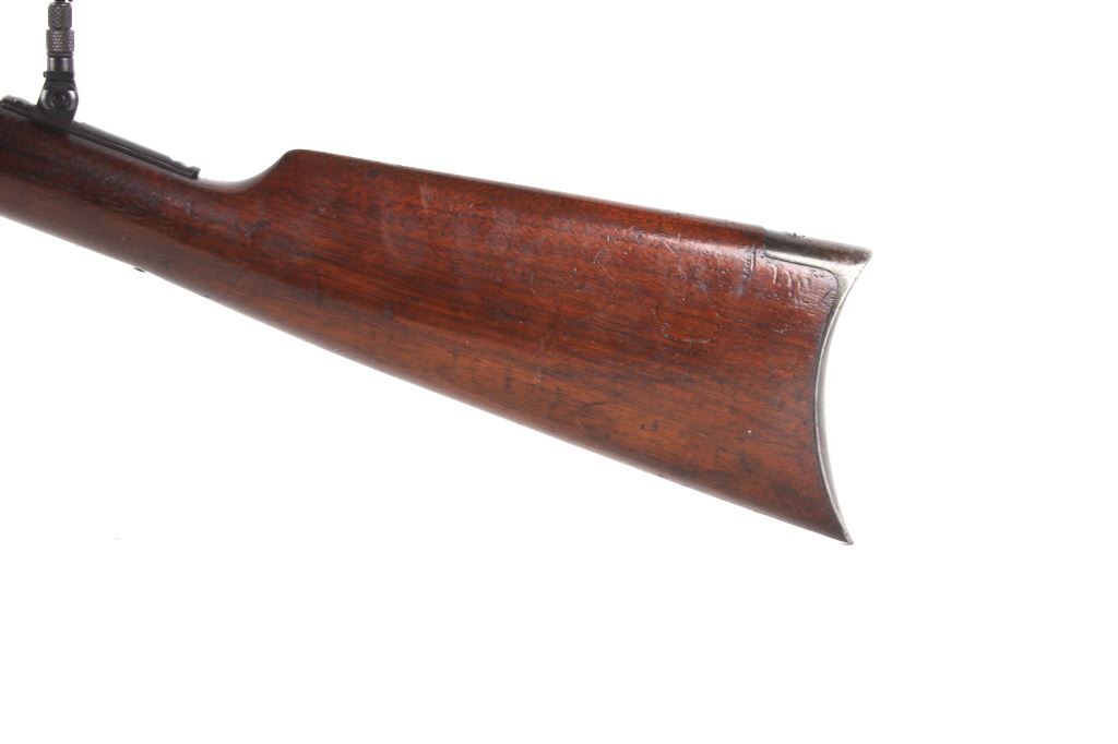 Featured in this lot we have an early Winchester Model 1890 pump action rifle in .22 W.R.F. caliber, serial number 409511, manufactured in 1909. The rifle features a .22 W.R.F. chambering along with its standard 24" long barrel, walnut stock, and distinctive slide action. All Winchester markings and patent dates on the barrel are sharp and distinct as is the “MODEL 1890” stamping. The barrel ahead of the receiver is clearly marked “22 W.R.F.” and the upper tang retains good Winchester markings. This rifle also retains the original buckhorn rear sight with an aperture tang sight.The front sight is the correct short blade with bead. The action is tight and the forend is excellent. The forend screws are also in excellent condition . The butt stock is an uncleaned dark reddish/brown walnut that Winchester was known for. The takedown fit between the receiver and barrel assembly is also tight with no play and the bore retains good rifling. The Model 1890 was one of the most iconic and successful of all 20th Century .22 Rim Fire rifles. Most saw hard use in target shooting, small game hunting and general plinking. Very few have survived in presentable condition today. This is an outstandingly 115 year old Winchester. The rifle weighs 5lbs 10oz. Serial Number: 409511. This firearm qualifies as a Curio & Relic firearm, and requires FFL Transfer or NICS Background Check.