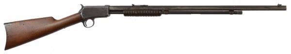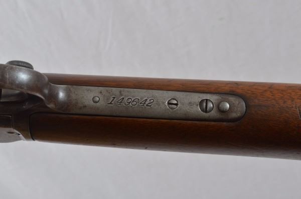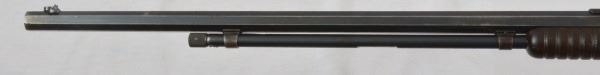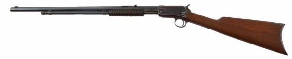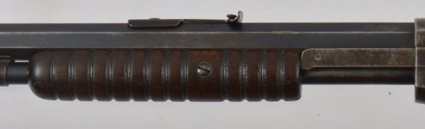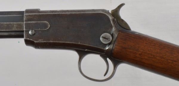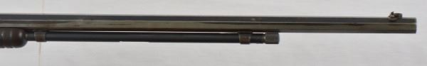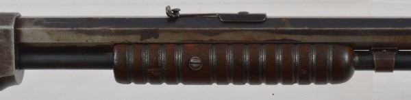 * Serial no. 149642 .22 short pump action rifle with 24" octagon barrel. in good working condition retains approx. 60% of original finish with loss along the right side of barrel.