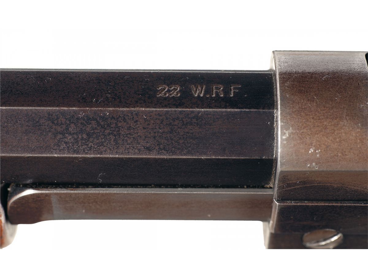 Late Second Model manufactured in 1906 with a beaded blade front and elevation adjustable rear sights. The top tang is marked with the transitional tang marking and the lower tang is marked with the serial number. The barrel is roll stamped on the top barrel flat with the fourth or 90-3 barrel marking. Mounted on a 12 groove round forearm and straight grip stock with smooth curved steel buttplate.