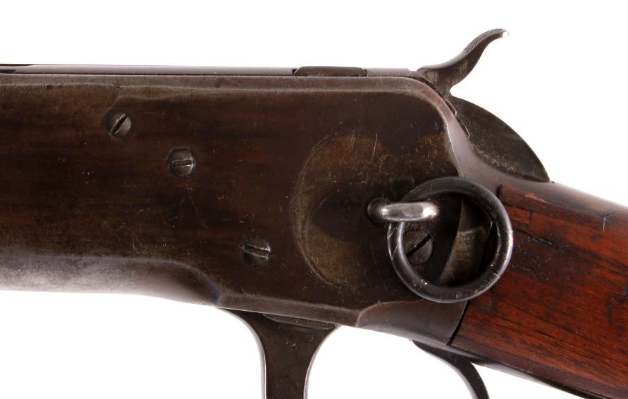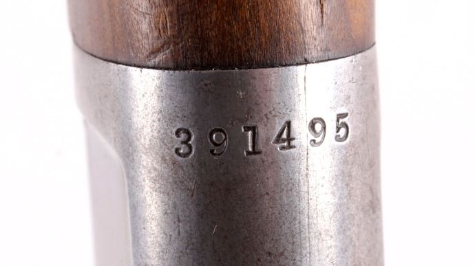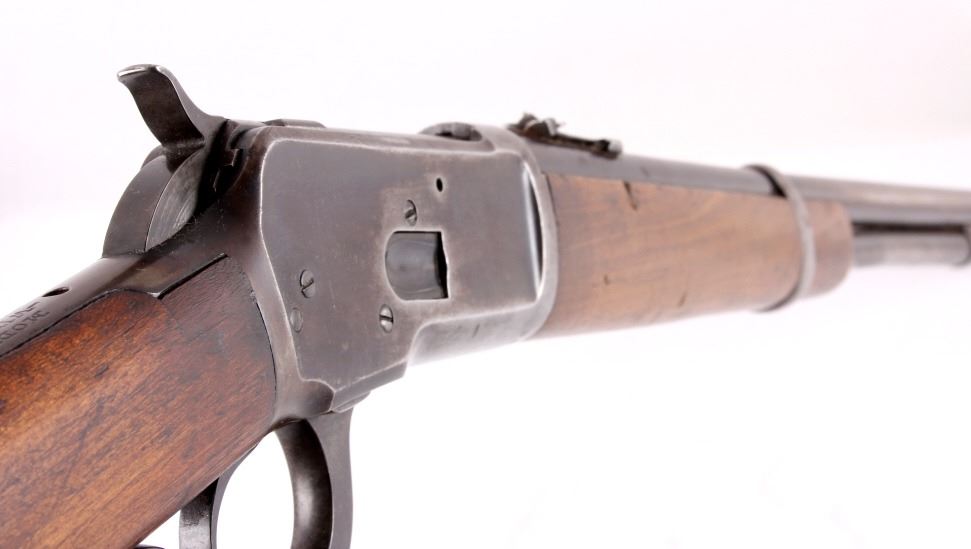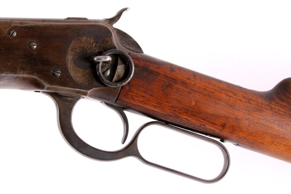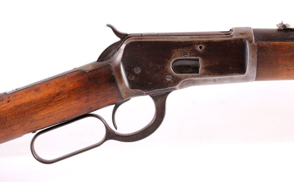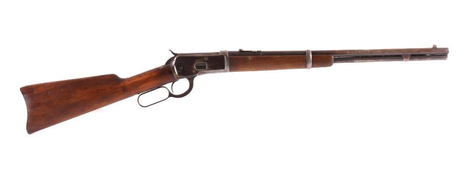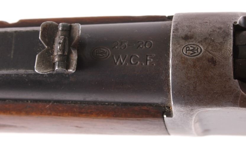 This is a Winchester Repeating Arms Co. Model 1892 carbine rifle manufactured in 1907. The rifle is chambered for .25-20 W.C.F. and features a solid wood stock. The rifle shows good overall condition. The butt stock does have some repairs as shown. The rifle measures 37.5" long. Serial # 391495.