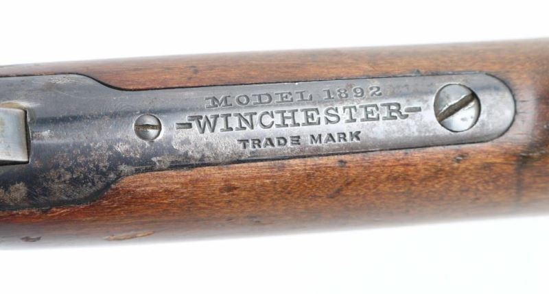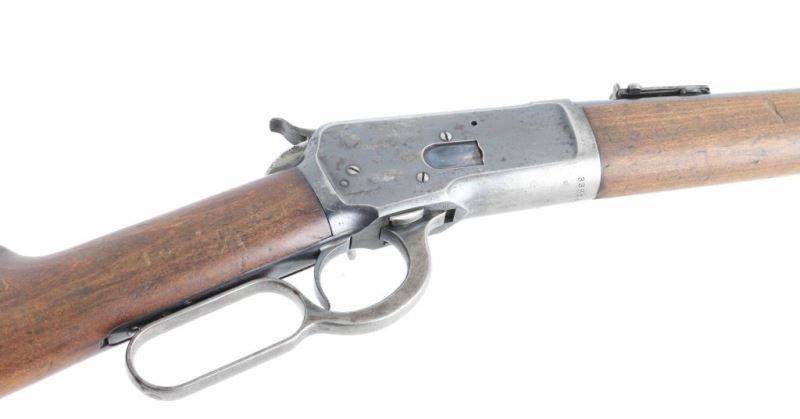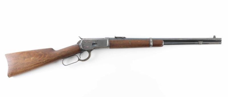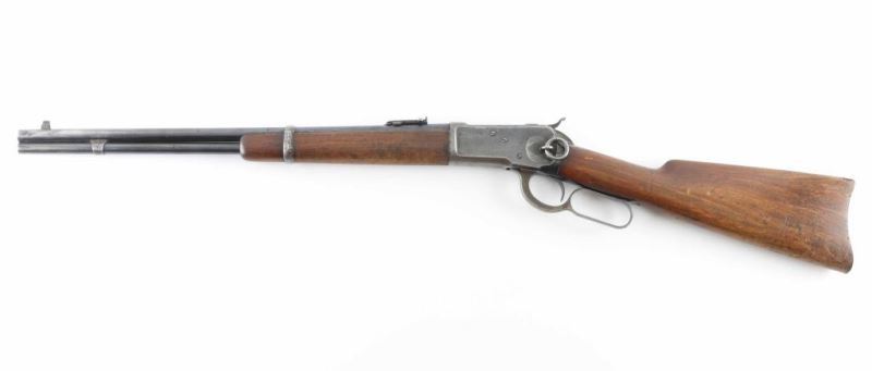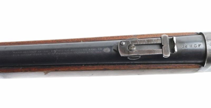 Rifle. Lever-Action. Saddle-ring carbine. manufactured 1907. 20" round barrel, with front post/bead, and u-notch/ladder rear sights. Winchester/patent markings on barrel/tang. Barrel/receiver proofed. "32 W.C.F. forward of receiver. Action is crisp tight. Bore appears excellent/bright. Blued metal finish is about 60%, with handling loss, scratches, and some slight pin-prick pitting. Mostly on the receiver/lever. Walnut stock/forearm are good with minor scratches dings. NRA Condition-Good. Modern Firearm.